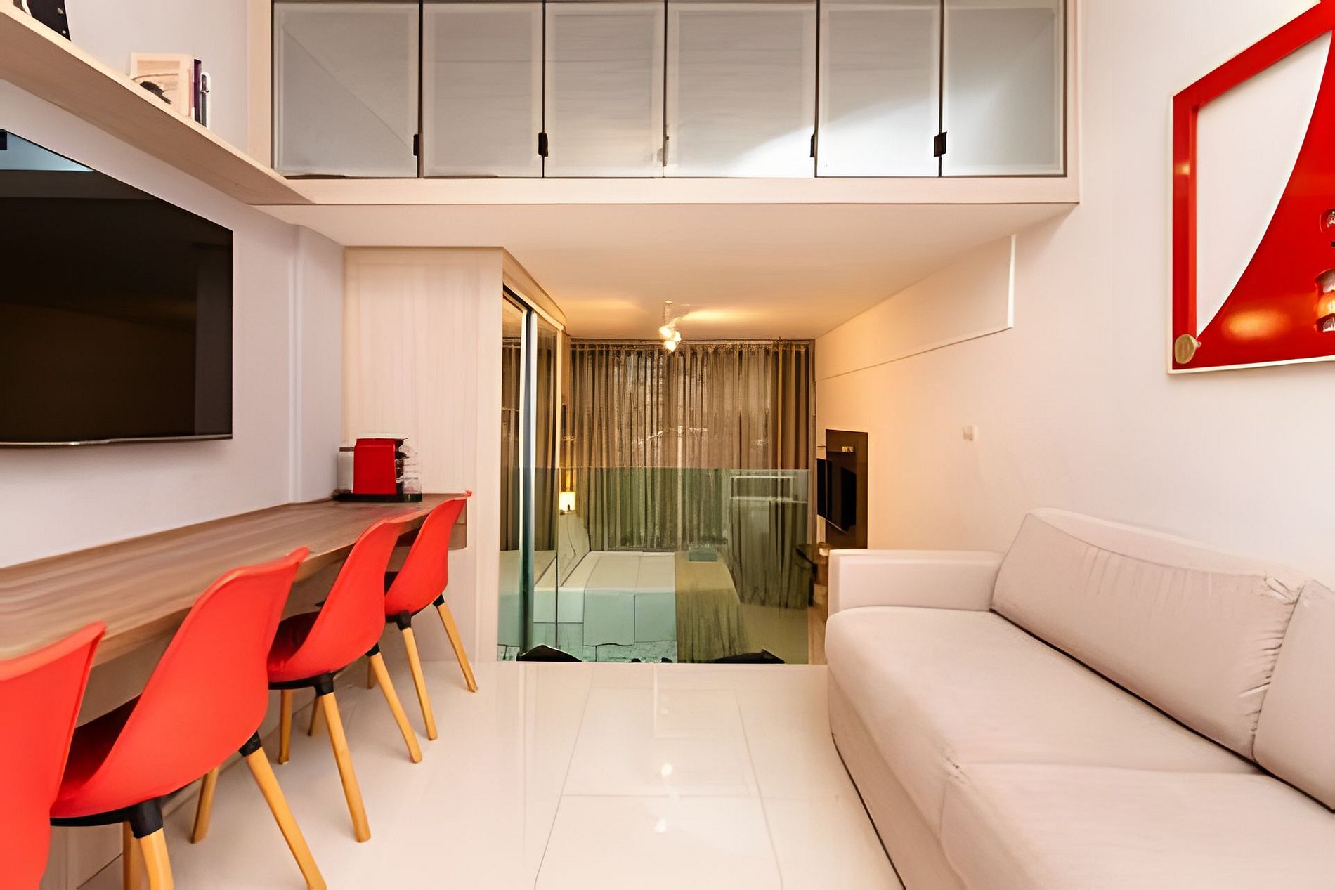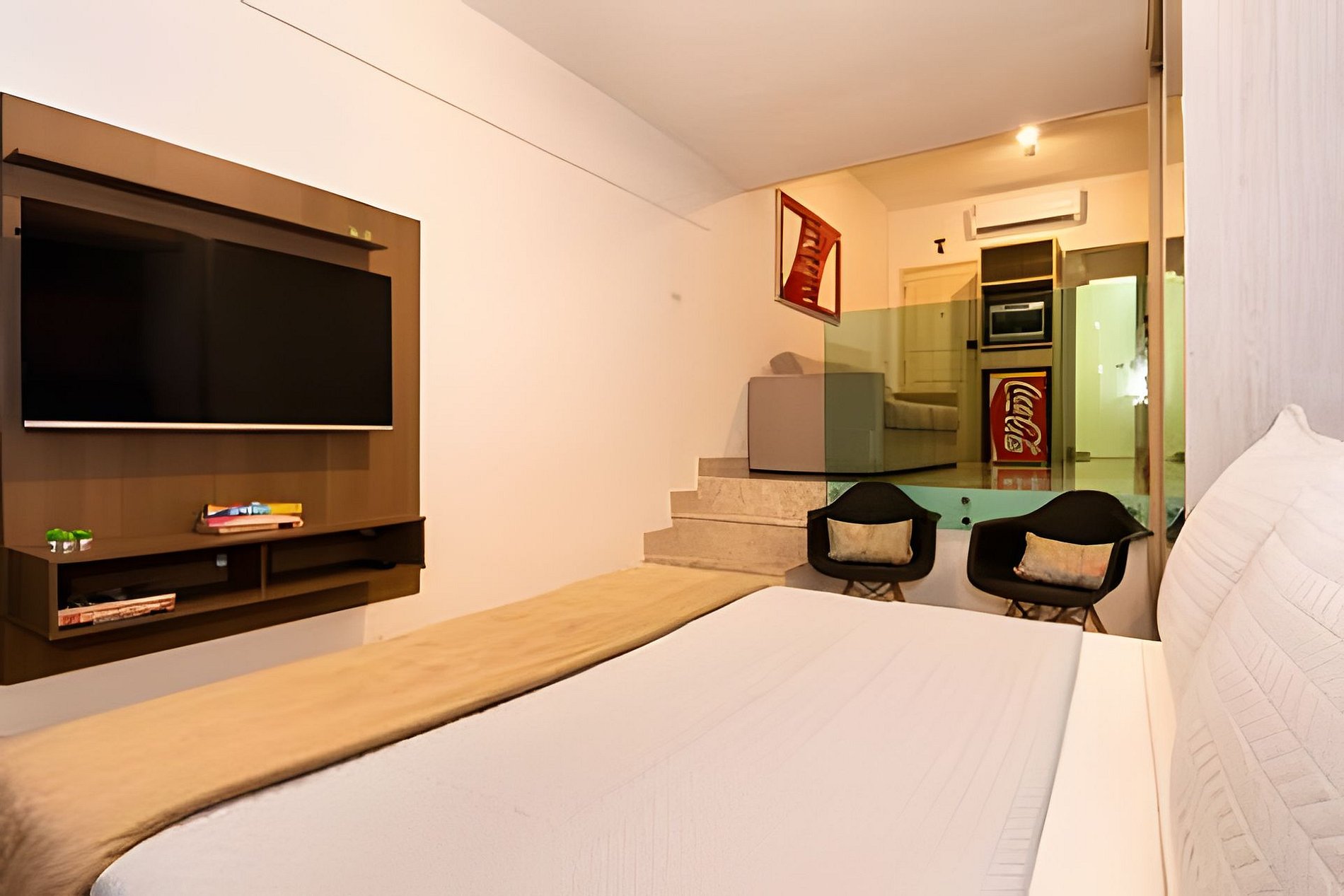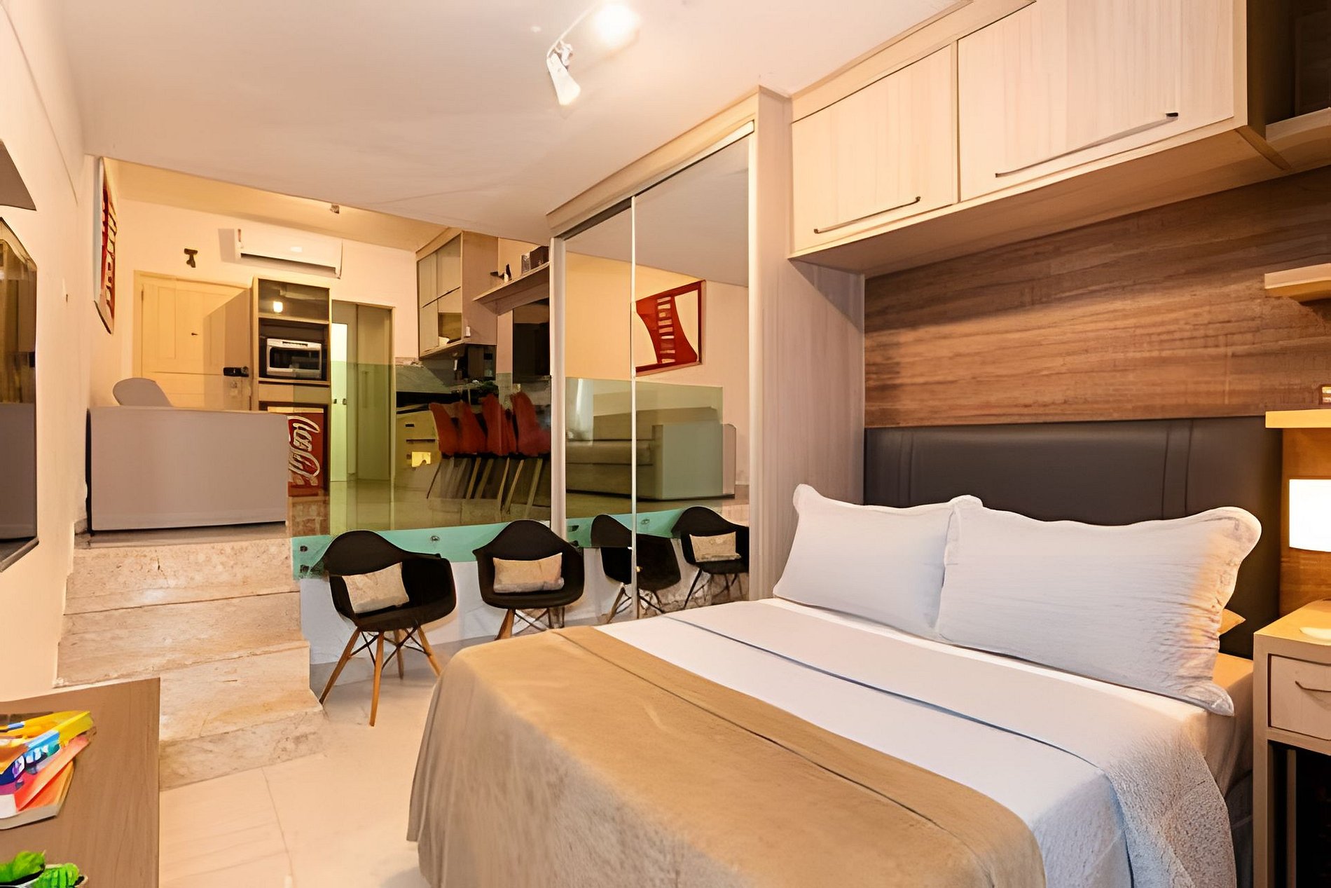 Espaço dedicado à hospitalidade, completo com todas as facilidades para uma hospedagem confortável e agradável. O quarto está equipado com uma cama de casal e SmartTv. A sala possui um sofá-cama para até 2 pessoas, SmartTv e ar-condicionado split. A cozinha está completamente equipada com tudo que você precisa para sentir-se em casa; microondas, filtro de água, frigobar, sanduicheira, máquina Nespresso, pratos, panelas, talheres. O banheiro possui box com blindex, chuveiro elétrico e secador de cabelo. Possui portaria 24 horas e garagem para 01 carro. O apartamento fica no primeiro andar e é extremamente silencioso. Para acessar o apartamento, é preciso subir um lance de escadas.