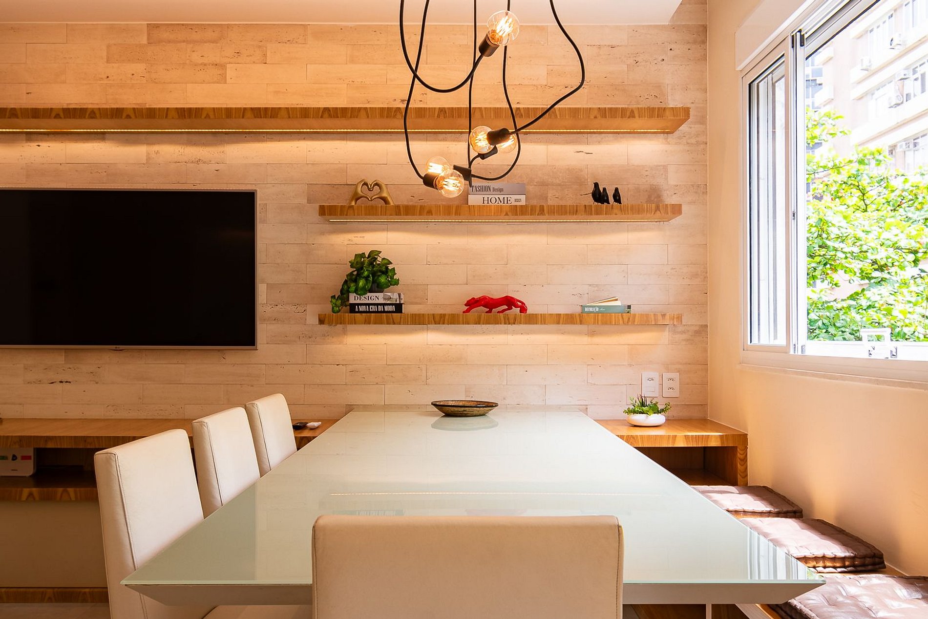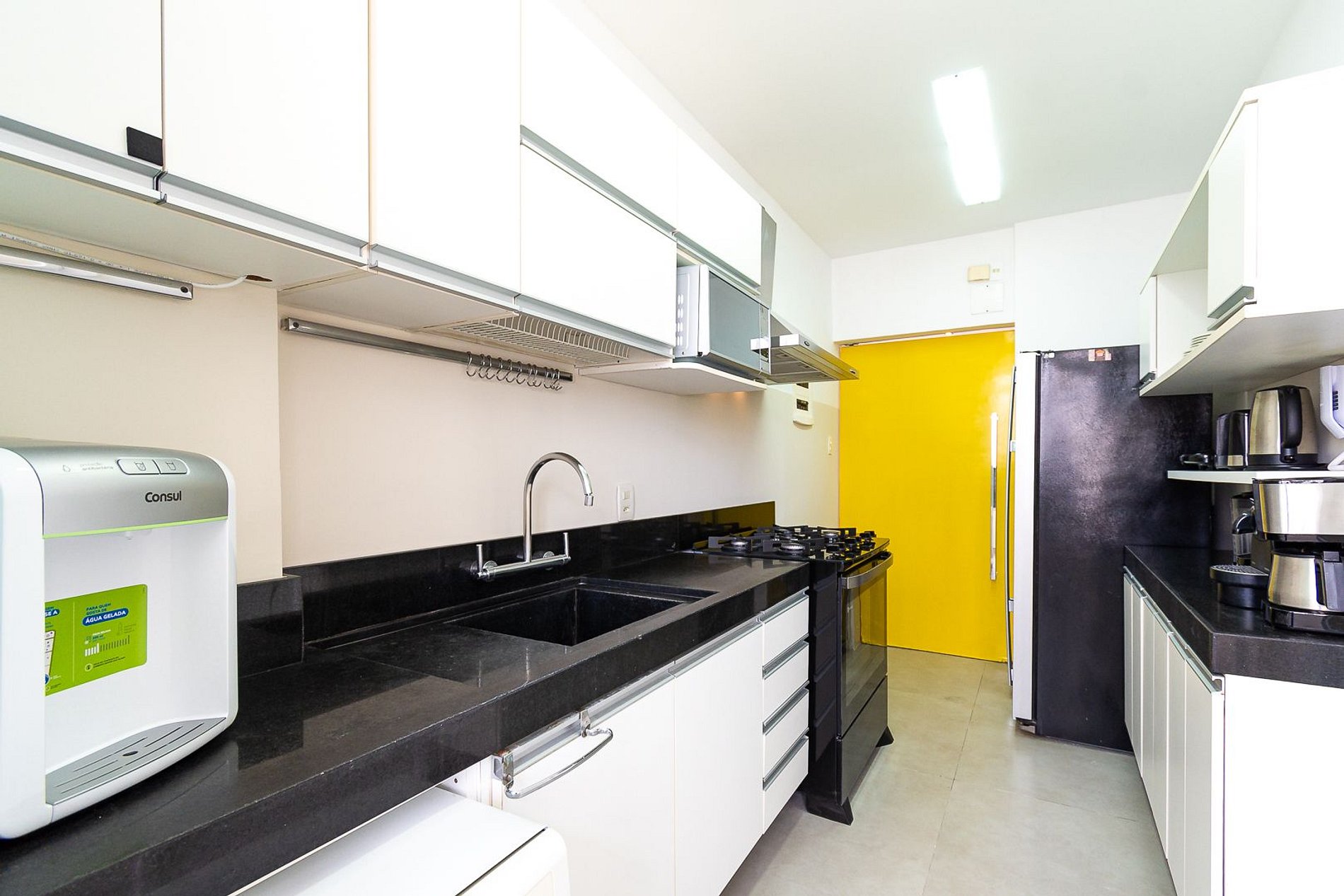 Espaço dedicado à hospitalidade, decorado com primor e completo com todas as facilidades para uma estadia confortável e agradável. A Suíte está equipada com uma cama King-Size, ar-condicionado split, SmartTV, closet e estação de trabalho. O segundo quarto está equipado com uma cama de casal, armário e ar-condicionado Split. A sala de estar possui ar-condicionado split, SmartTV, sofá e mesa de jantar com 7 assentos. A cozinha está totalmente equipada com tudo que você precisa para se sentir em casa: micro-ondas, fogão a gás de cinco bocas, forno, geladeira, filtro de água, máquina de café, liquidificador, pratos, panelas e talheres. Os banheiros possuem água quente por aquecedor a gás automatizado.