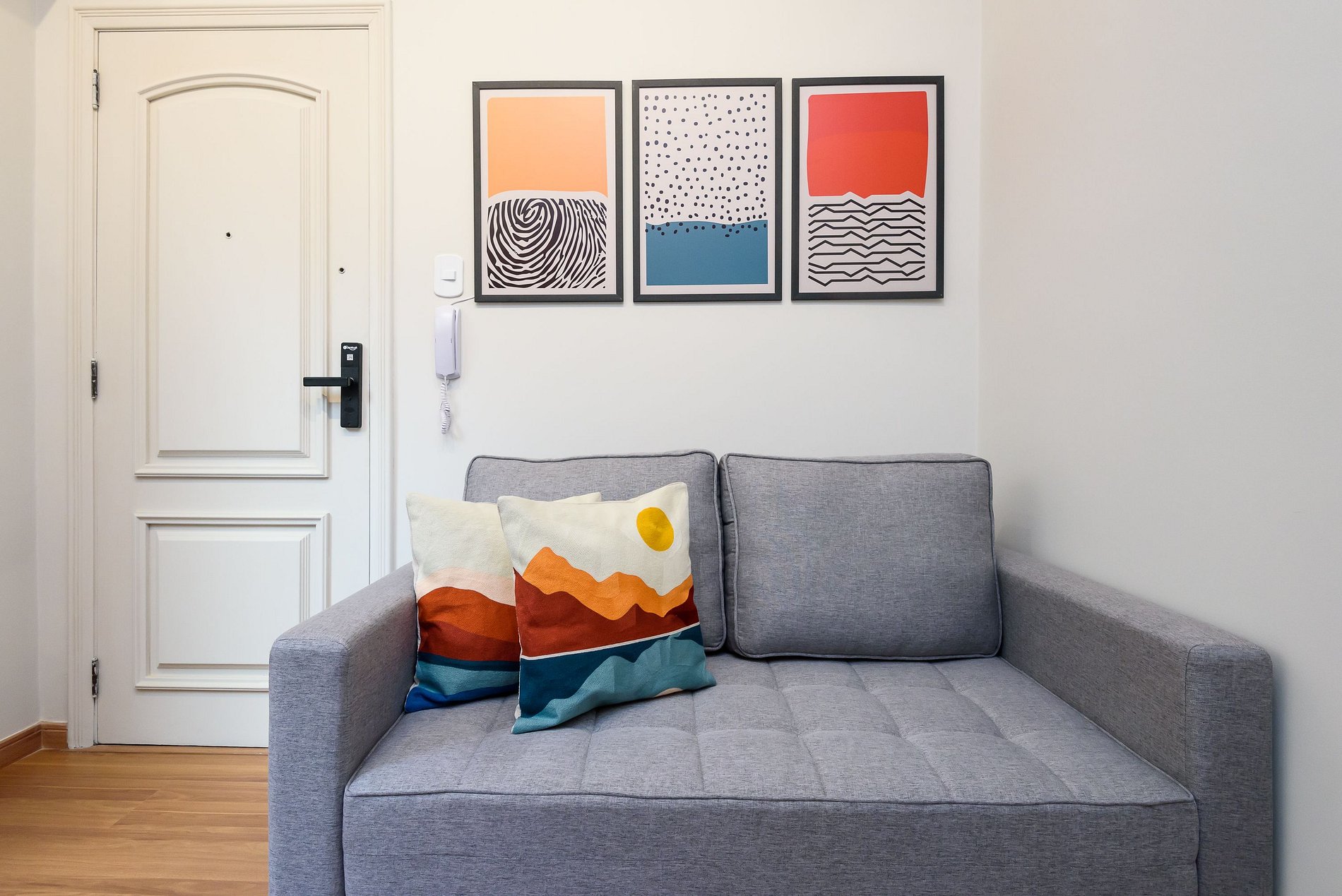 O quarto está equipado com uma cama Queen-Size, ar-condicionado split, SmartTv e estação de trabalho. A sala de estar possui ar-condicionado split, SmartTV e sofá-cama. A cozinha está totalmente equipada com tudo que você precisa para se sentir em casa: micro-ondas, fogão a gás de 2 bocas, geladeira, filtro de água, máquina de café, liquidificador, pratos, panelas, talheres e um máquina lava e seca. O banheiro tem box com chuveiro e secador de cabelo.