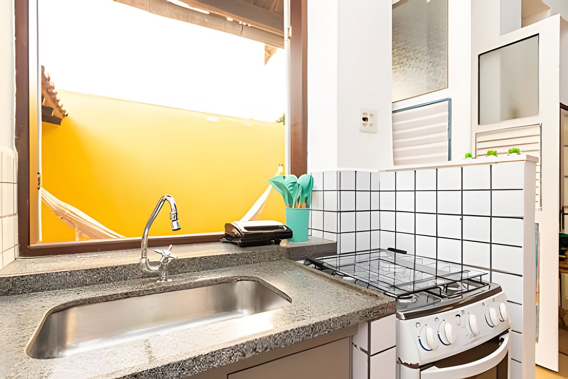 Boas-vindas à Atrium! Olá, você chegou à nossa encantadora casa em Santa Teresa, onde o estilo encontra o aconchego. Com uma atmosfera única, este espaço combina decoração contemporânea com um toque de um tradicional casarão. Relaxe em uma rede, refresque-se no chuveirão ao ar livre ou desfrute de uma churrasqueira privativa. Descubra a harmonia entre design e conforto neste refúgio artístico, oferecendo uma experiência única no coração de Santa Teresa, de frente para o Largo das Neves! Está é a sua casa no bairro mais charmoso do Rio de Janeiro: Santa Teresa. A casa, Santa Sol, é planejada e dedicada à hospitalidade. Localizada em uma Vila privada, no Largo das Neves, este espaço é perfeito para quem busca estar próximo dos principais pontos turísticos do Bairro e da Cidade mas não abre mão do sossego e aconchego que somente uma casa pode oferecer, aqui você estará em uma localização estratégica. Logo na entrada da casa você encontra um espaço de aconchego e relaxamento; uma confortável rede te espera para um descanso merecido. Além disso, você encontra neste mesmo espaço um chuveirão para aproveitar os dias de sol, além de uma churrasqueira rústica com todos os utensílios necessários. E o melhor? Esse espaço é de uso exclusivo dos hóspedes da Santa Sol =) A casa possui uma sala de estar com SmatTv e um sofá-cama que acomoda até 2 adultos, possui também uma cozinha completa com todos os utensílios necessários para você sentir-se em casa; fogão, geladeira, sanduicheira, microondas, liquidificador, filtro de água, panelas, copos e talheres, alem de um banheiro completo. O quarto fica no mezanino da casa e conta com uma cama de casal, armário, e aparelho de Ar-Condicionado Split. A área de serviço possui tanque e máquina de lavar.
