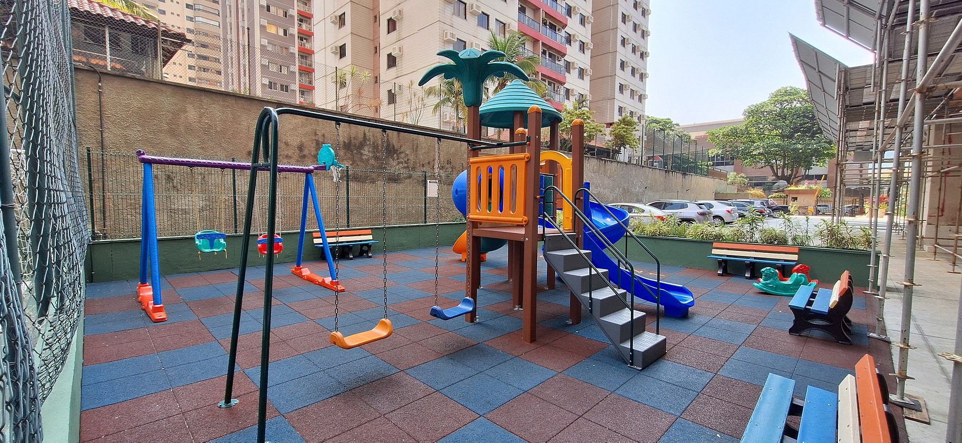 O apartamento também conta com máquina lava e seca, ferro e tábua de passar, e secador de cabelo. O condomínio possui estacionamento, piscina, academia, quadra poliesportiva, parquinho infantil, cantina e mini-mercado autônomo.