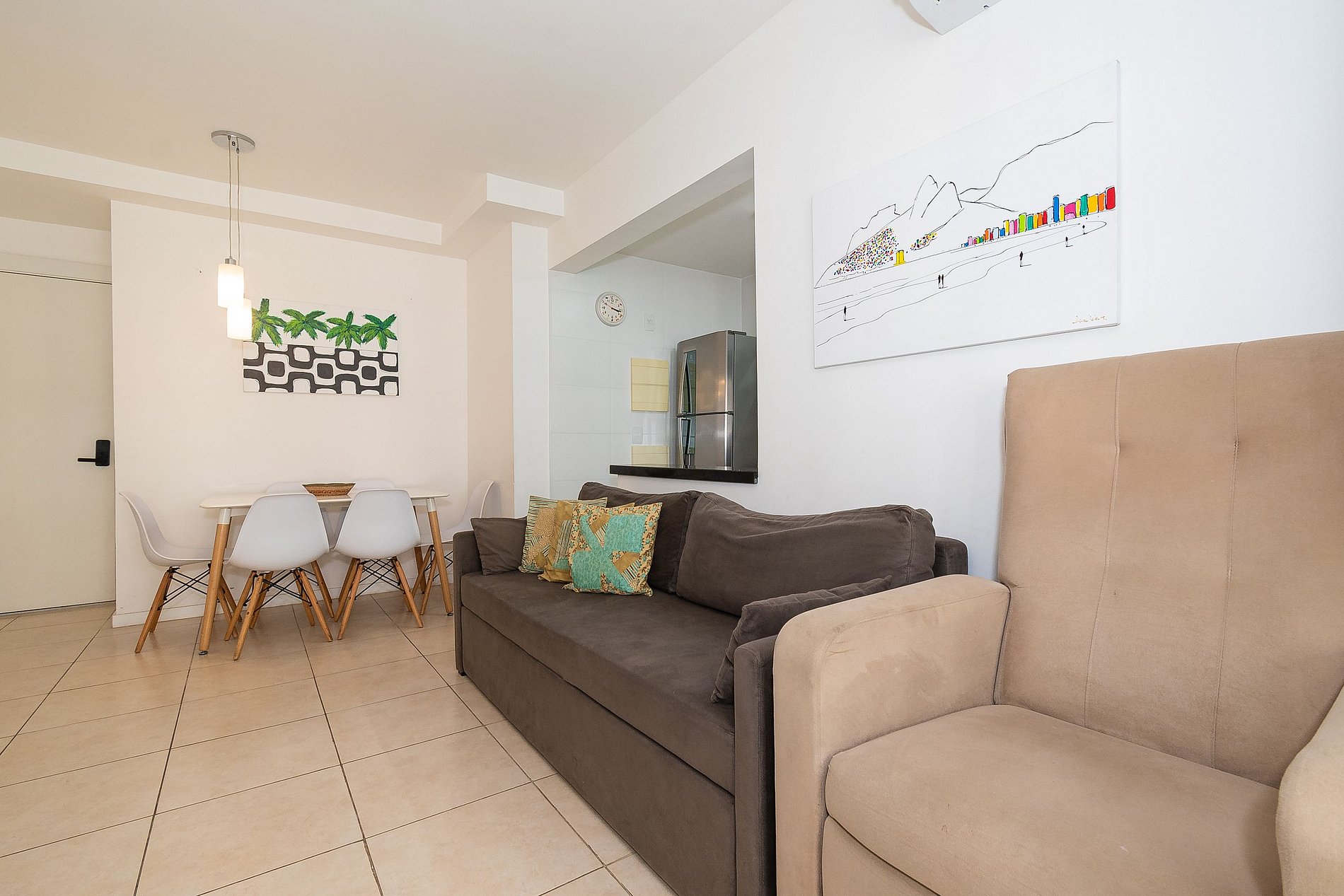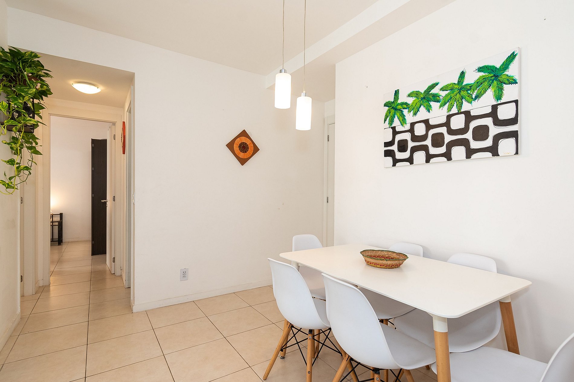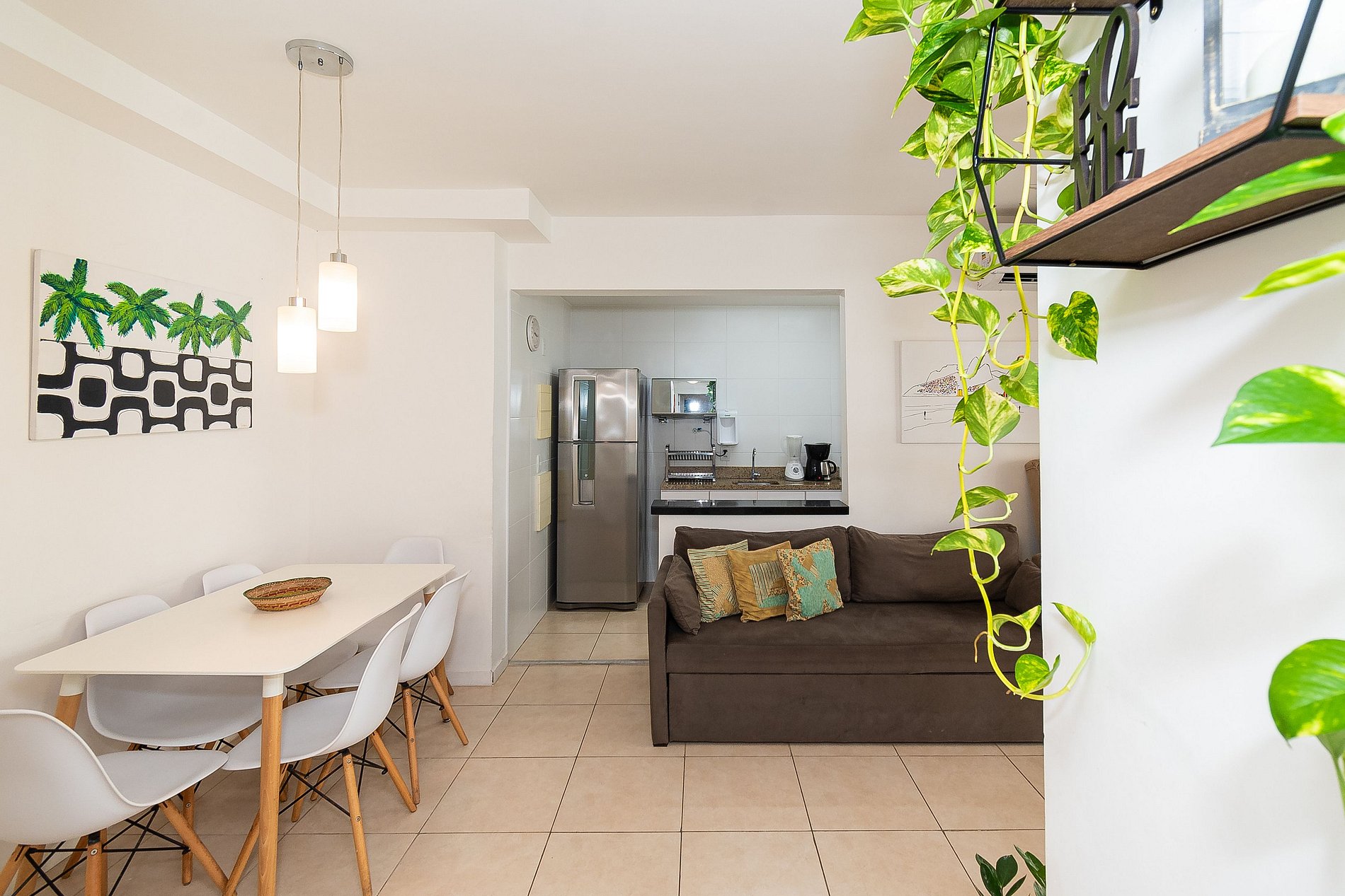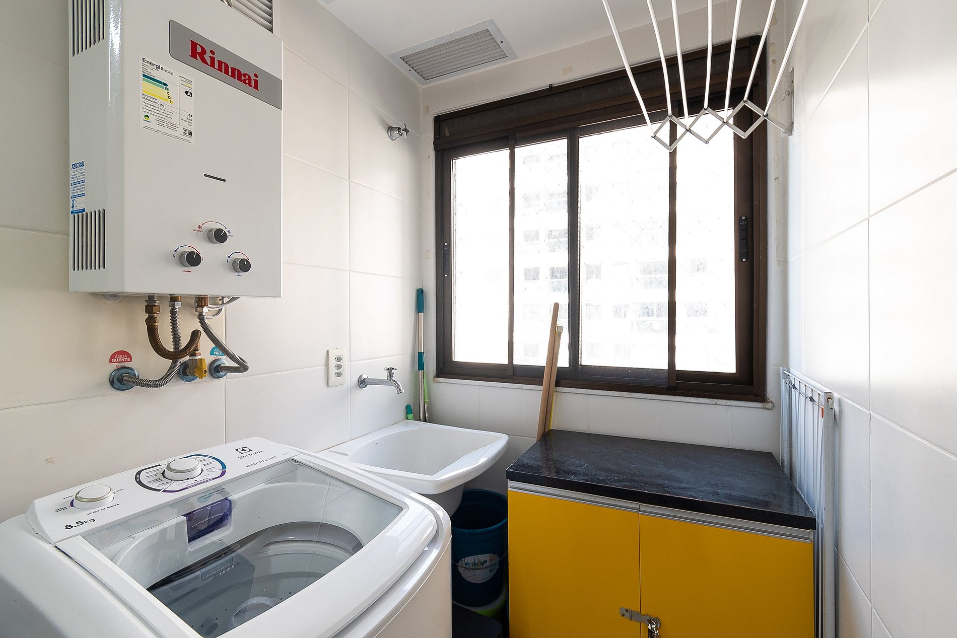 Na sala você encontrará uma Mesa de Jantar com 6 cadeiras, Sofá de 3 lugares + uma Poltrona reclinável. A Varanda está equipada com uma rede perfeita pra sonequinha da tarde, além de uma mesa com 4 cadeiras e tela de proteção, garantindo a segurança das crianças. A cozinha está completamente equipada com tudo que você precisa para sentir-se em casa; microondas, filtro de água, geladeira, máquina de café, pratos, panelas, talheres. Na Área de serviço você encontrará uma máquina de lavar, varal de roupas e utensílios de limpeza.