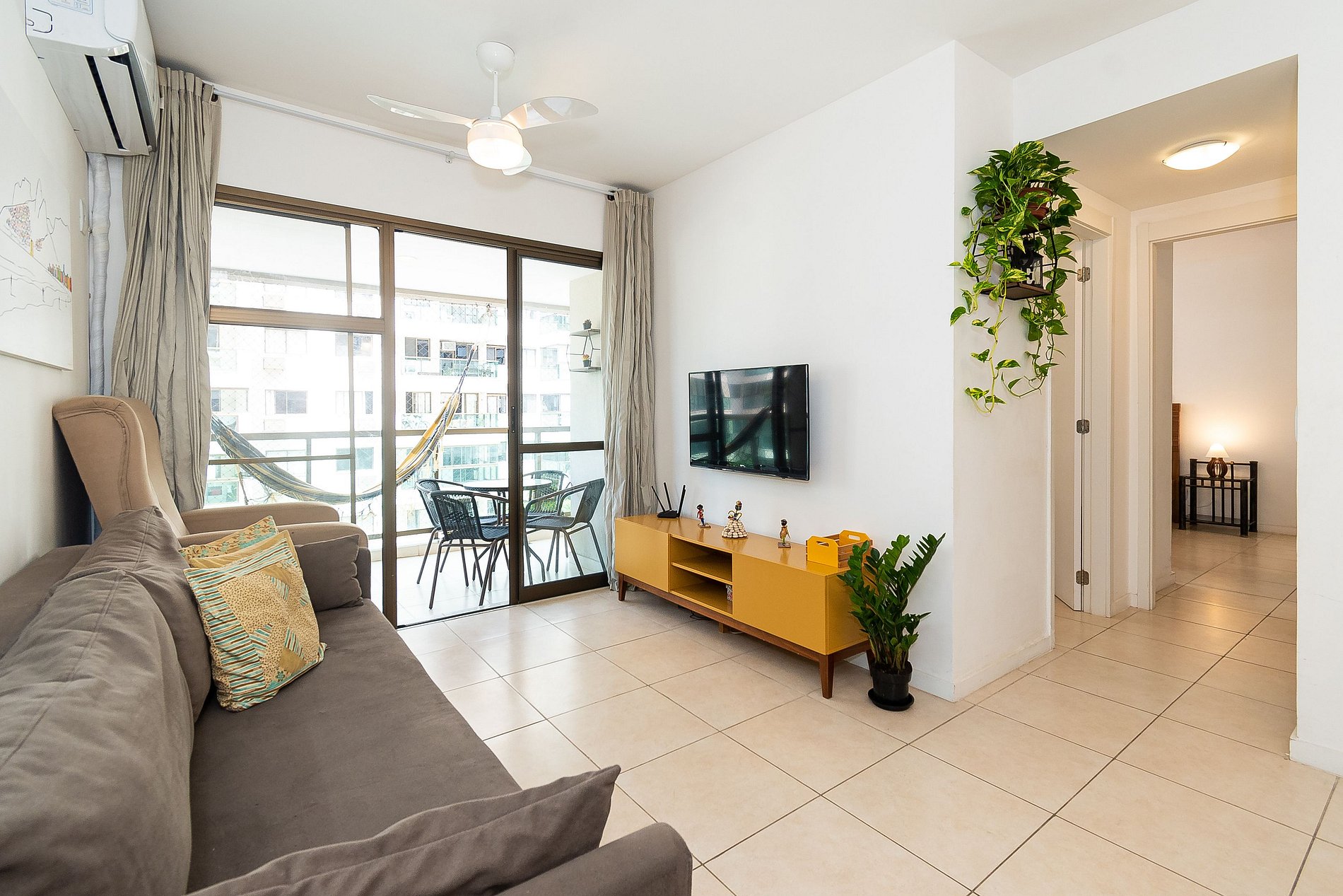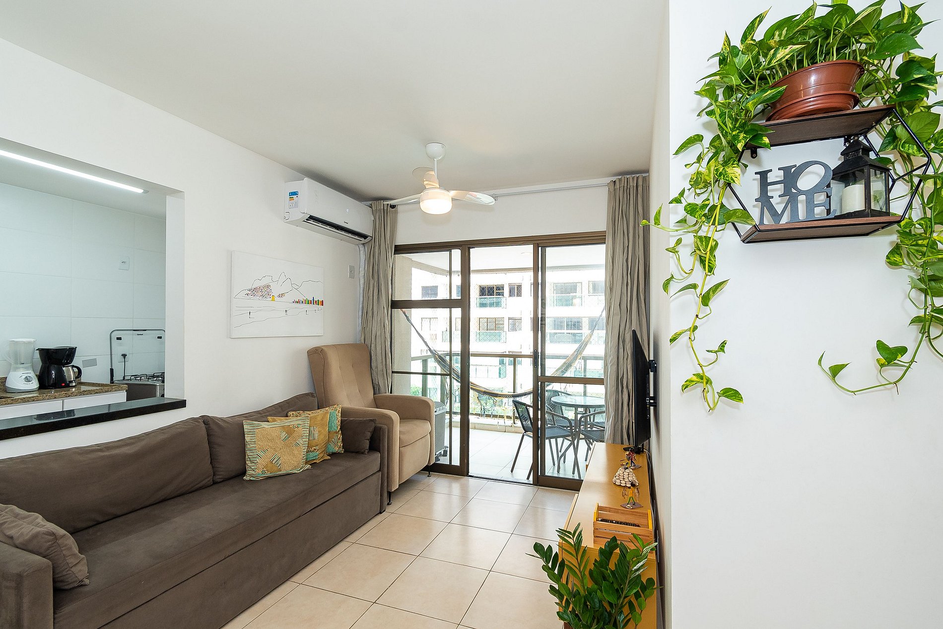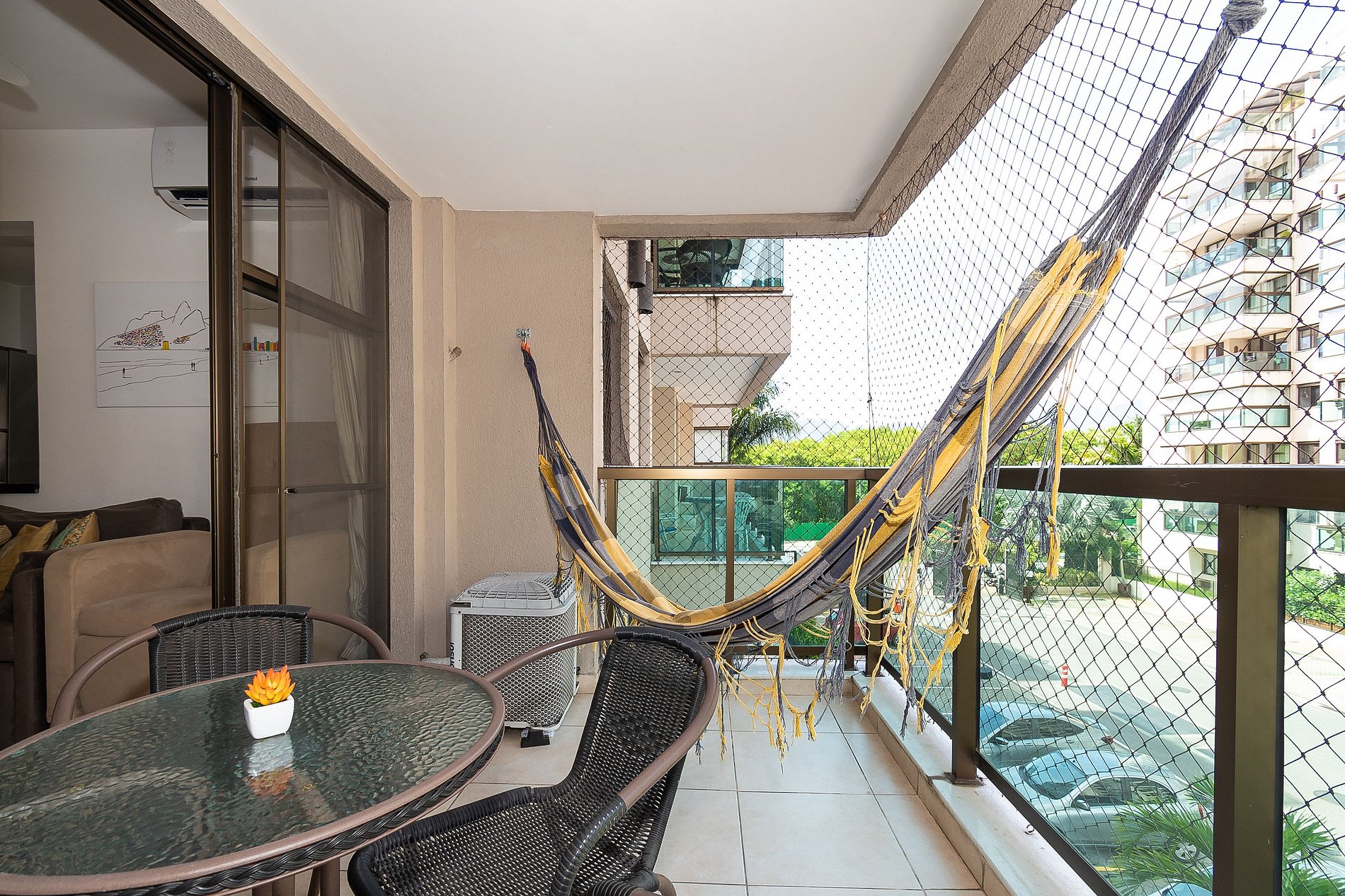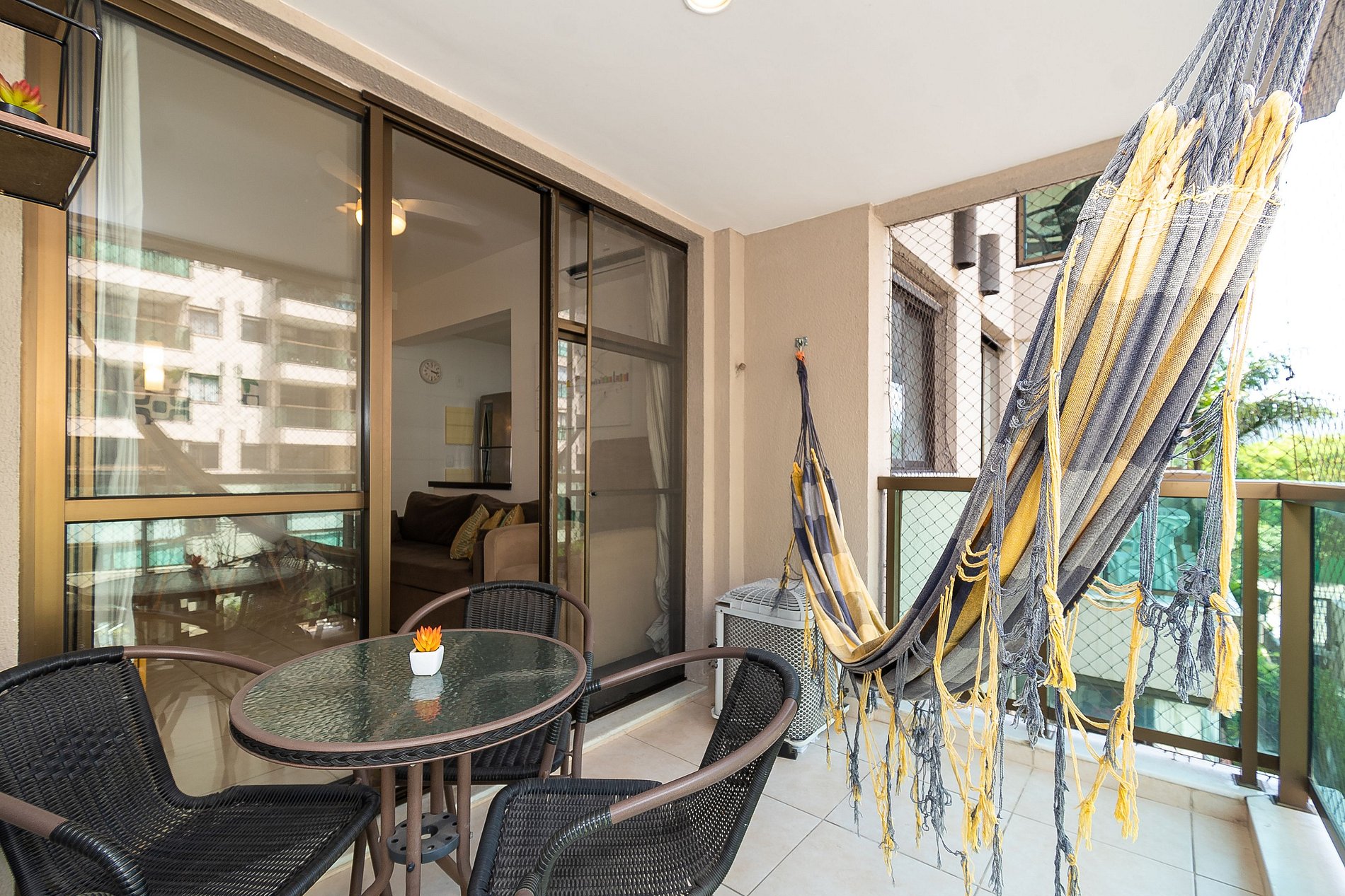Este apartamento possui 2 Quartos (sendo uma suíte) e conta com uma varanda super agradável e uma rede perfeita pra sua soneca da tarde! Além disso, é equipado com cozinha completa, Wi-Fi 200 Mega, Ar-Condicionado, Smart Tv e Máquina de Lavar.