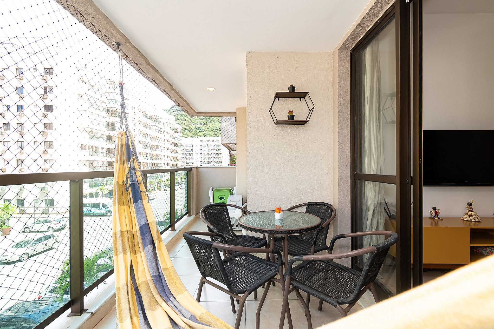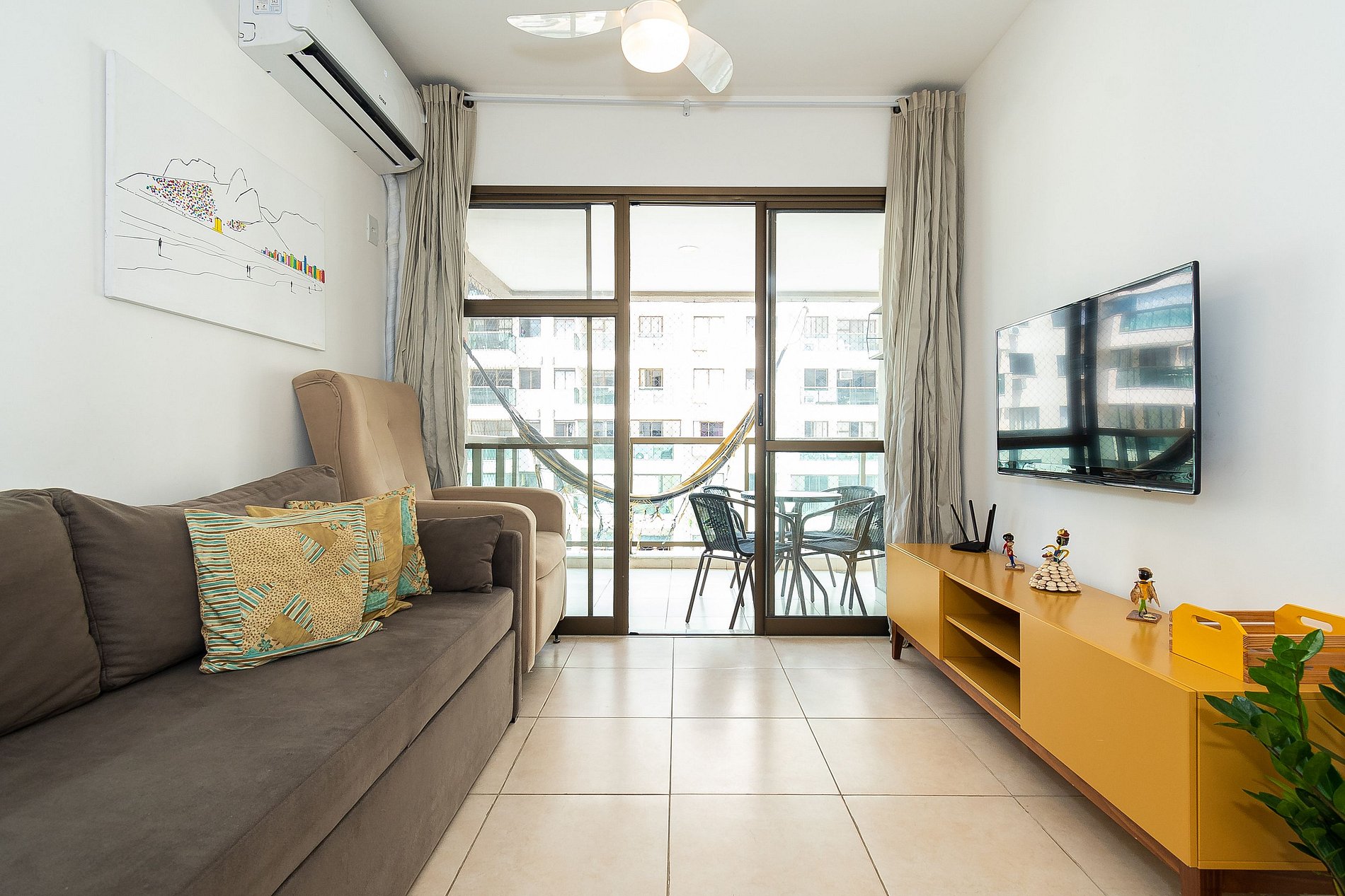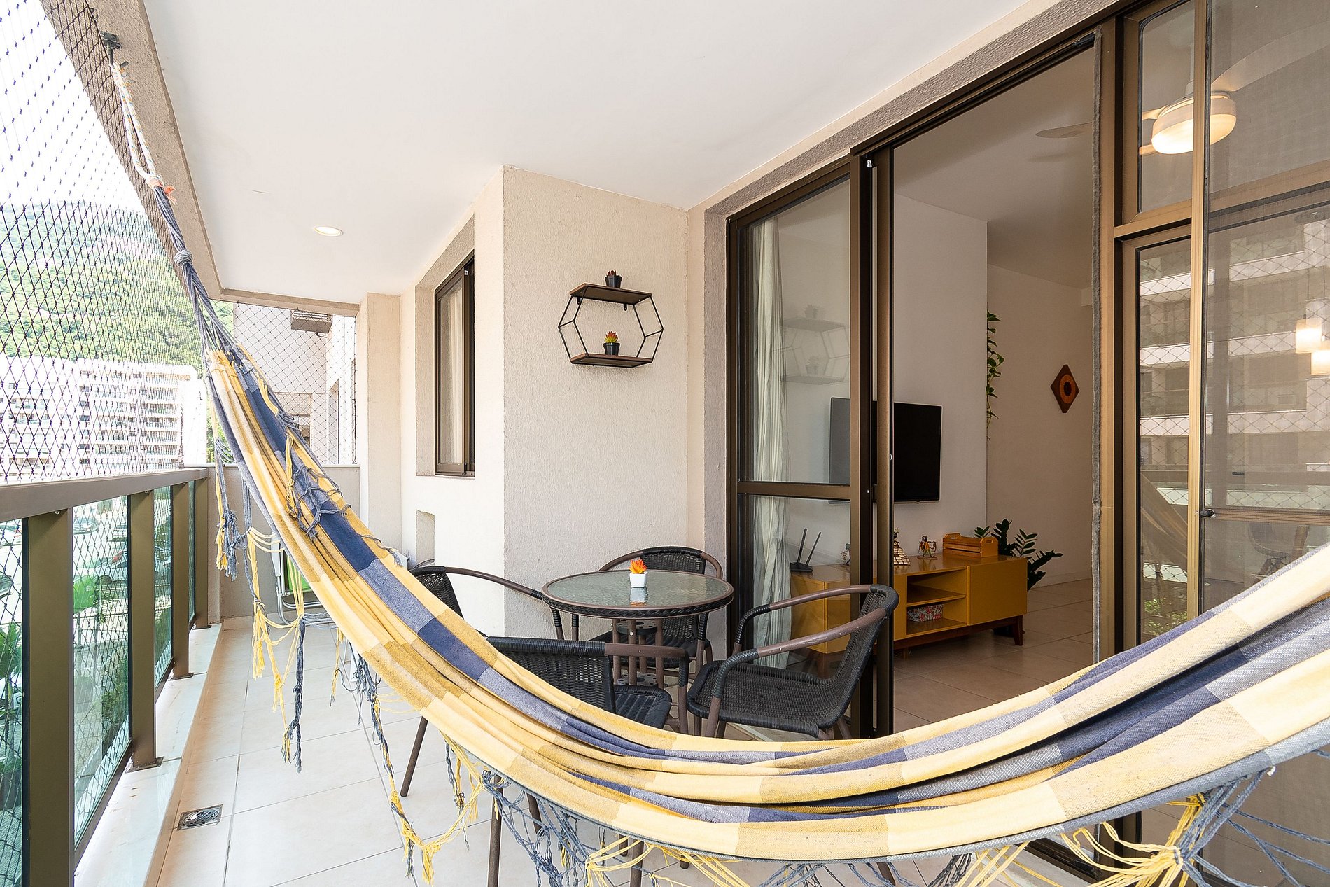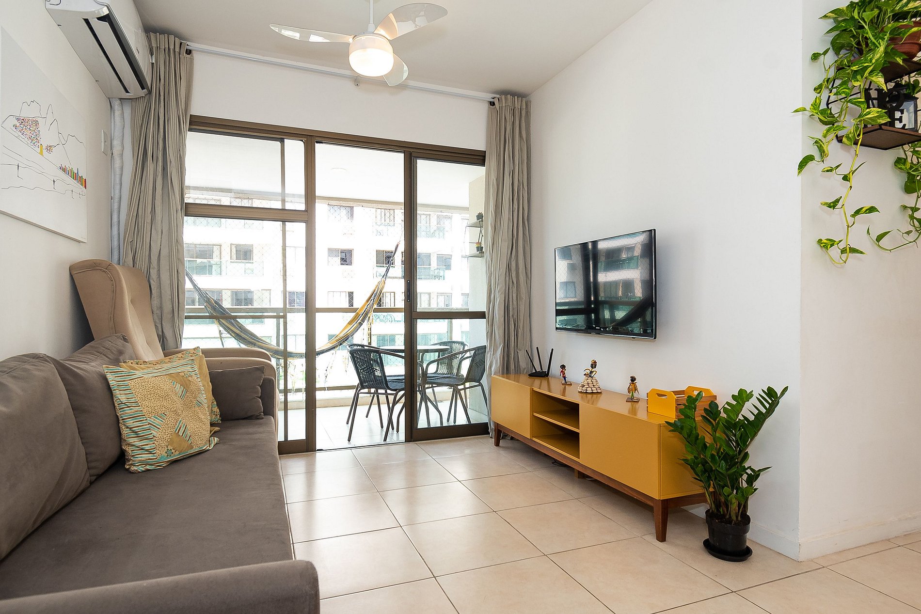 Este apartamento possui 2 Quartos (sendo uma suíte) e conta com uma varanda super agradável e uma rede perfeita pra sua soneca da tarde! Além disso, é equipado com cozinha completa, Wi-Fi 200 Mega, Ar-Condicionado, Smart Tv e Máquina de Lavar.