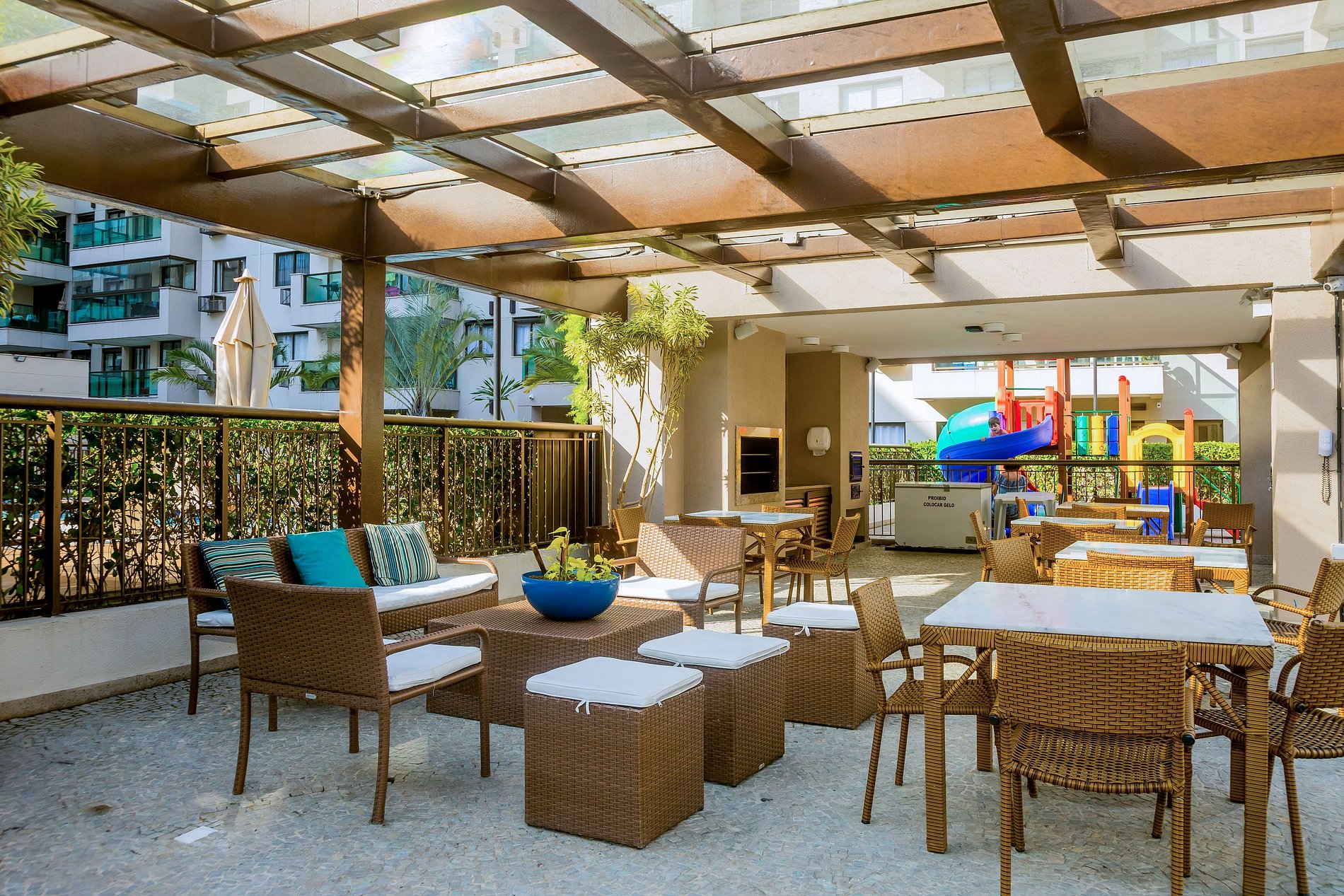 Este apartamento está no 3° andar e fica virado para o pátio interno do condomínio; local ideal para curtir um final-de-semana com a família ou morar por um período mais longo.