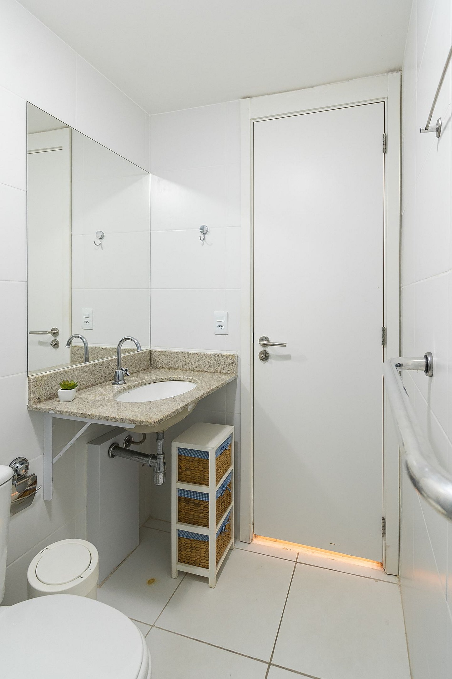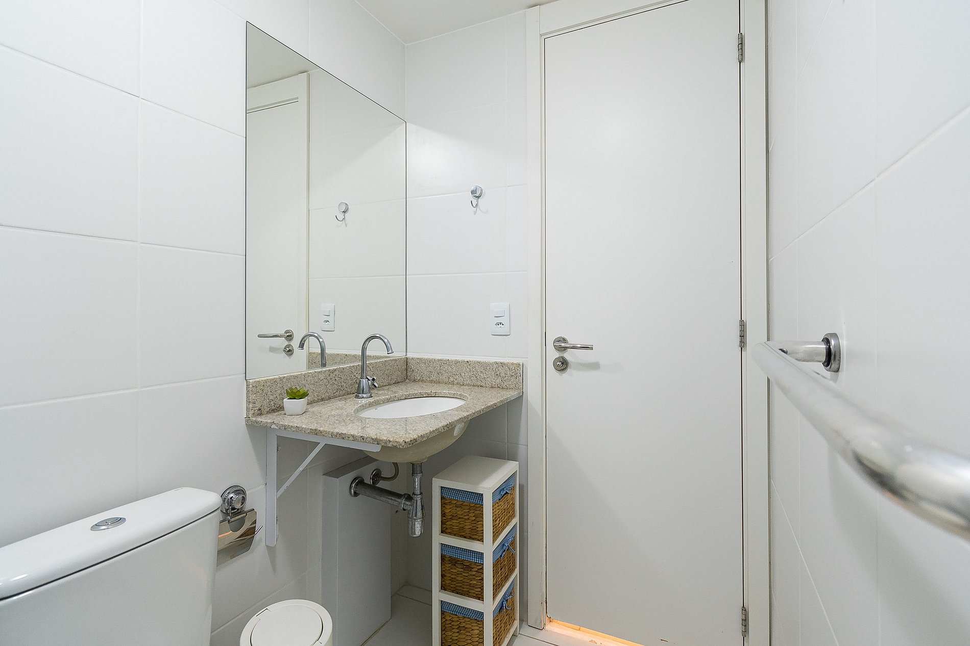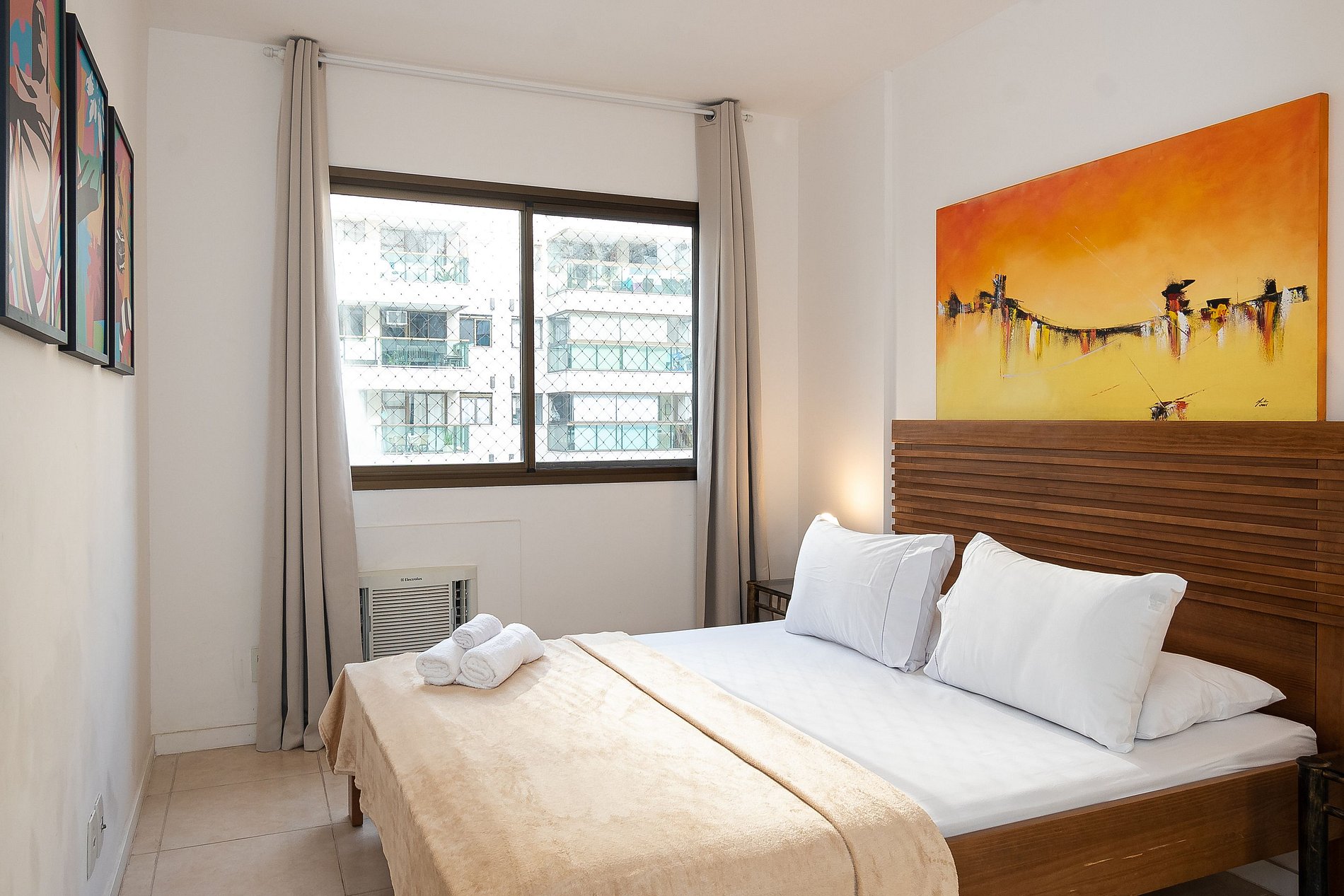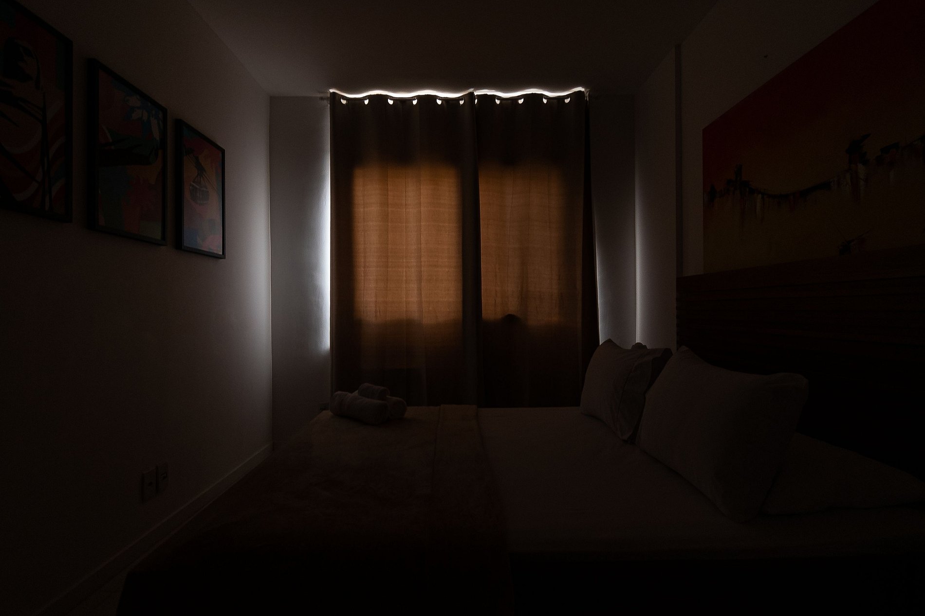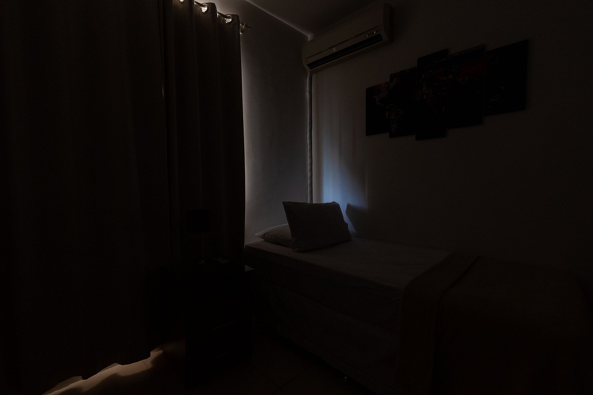 A Suíte está equipada com uma cama Queen-Size, Cortina Black-out, Ar-Condicionado e um guarda-roupas. Já o quarto de solteiro tem uma bi-cama, acomodando até 2 adultos confortavelmente, além de Ar-Condicionado Split e uma Arara de Roupas. Ambos os banheiros possuem Box de Vidro, sanitário e pia.