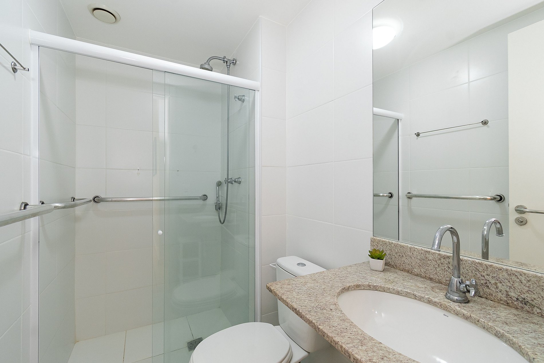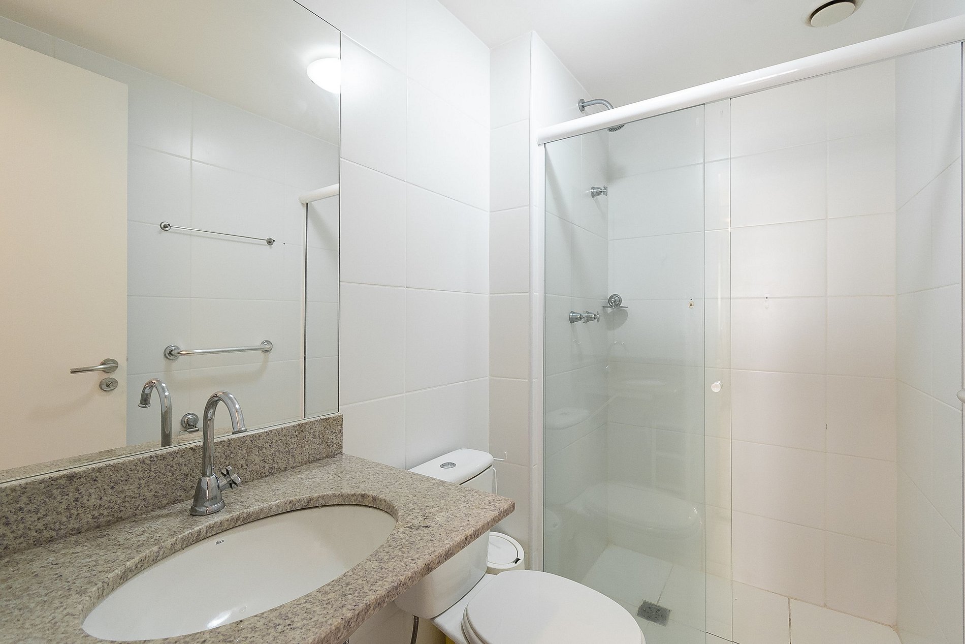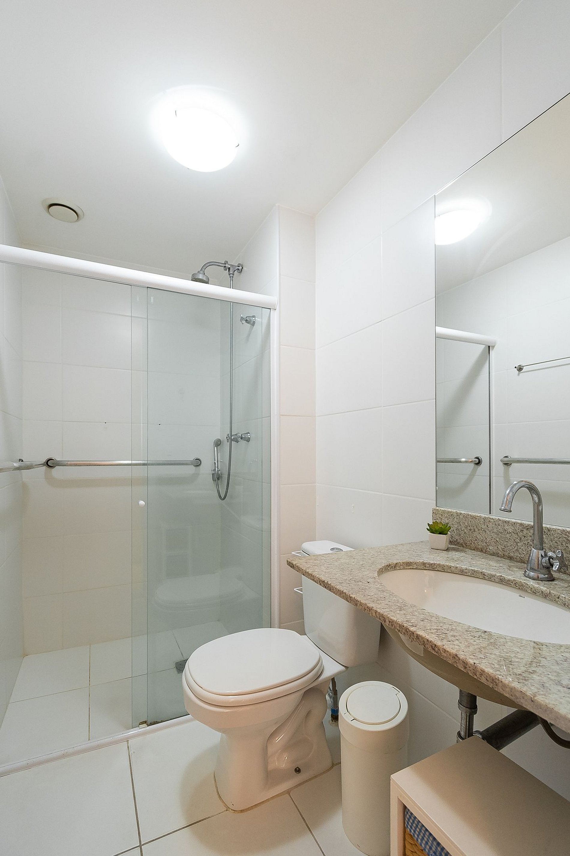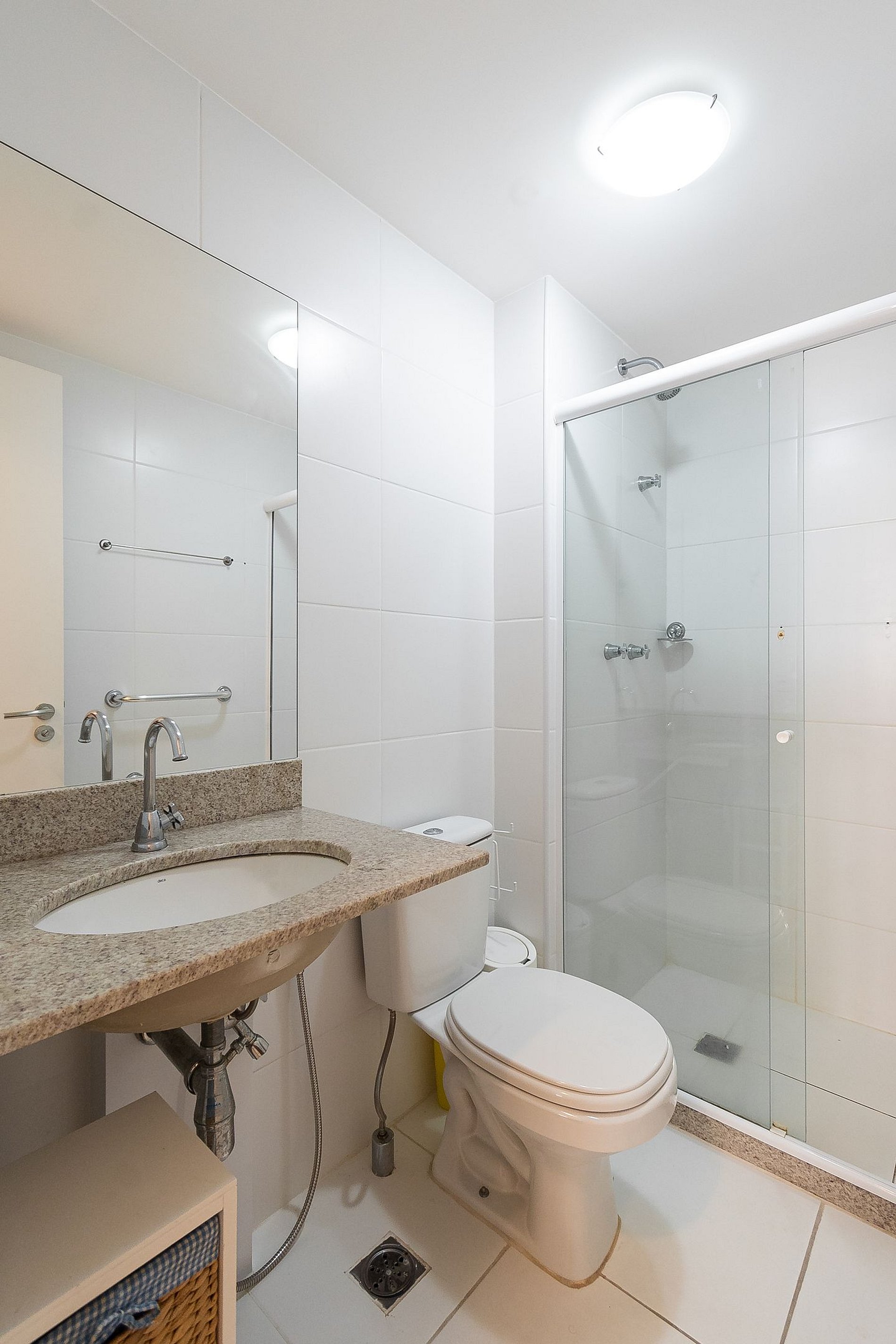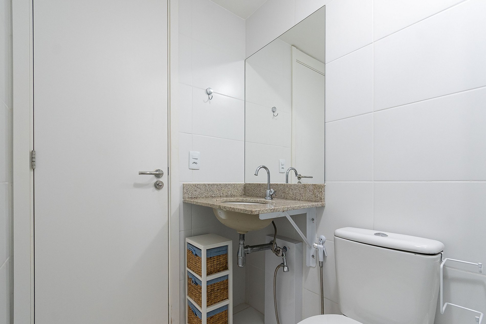 A Suíte está equipada com uma cama Queen-Size, Cortina Black-out, Ar-Condicionado e um guarda-roupas. Já o quarto de solteiro tem uma bi-cama, acomodando até 2 adultos confortavelmente, além de Ar-Condicionado Split e uma Arara de Roupas. Ambos os banheiros possuem Box de Vidro, sanitário e pia.