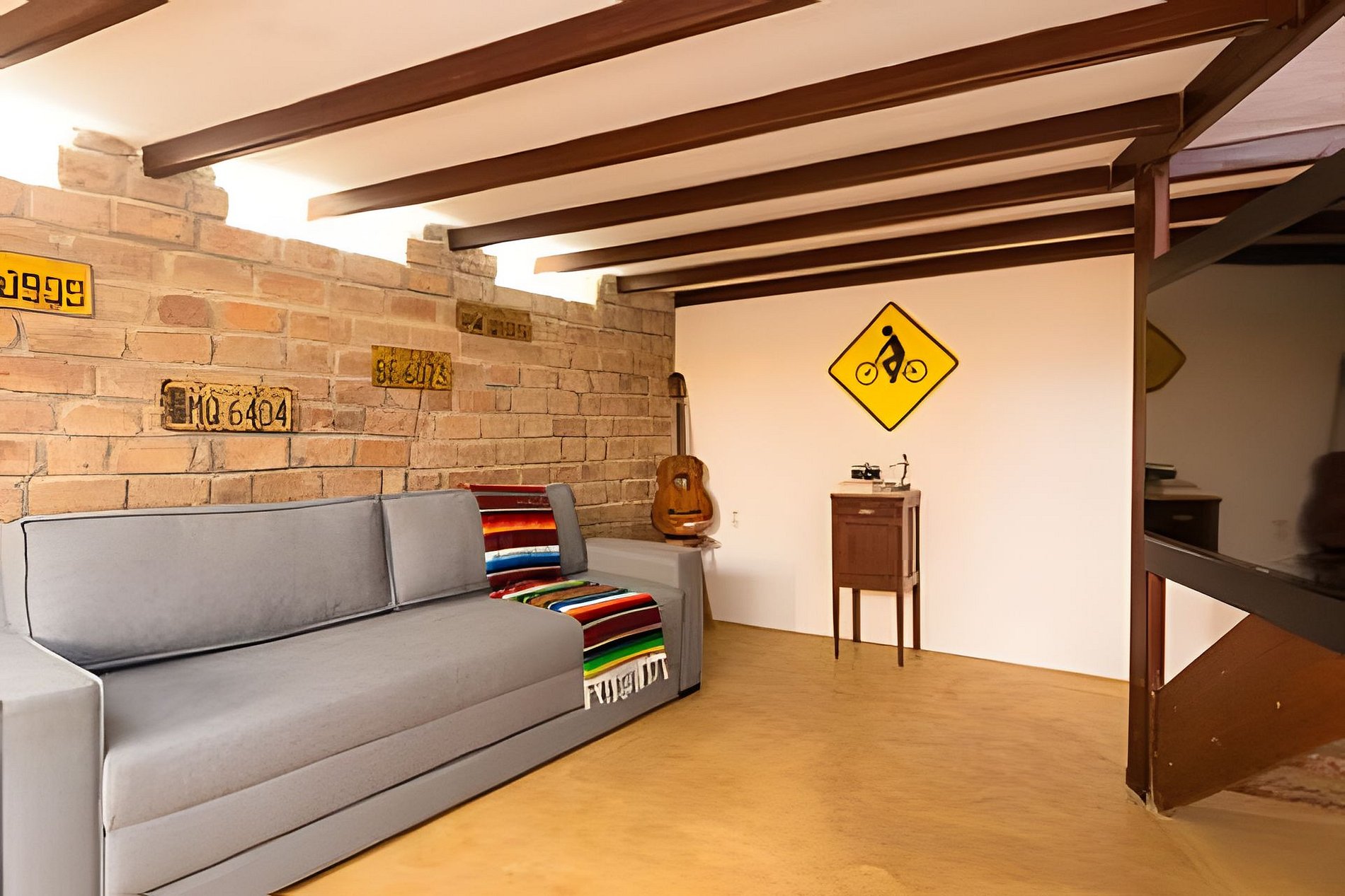 Boas-vindas à Atrium! Olá, você chegou à nossa encantadora casa em Santa Teresa, onde o estilo encontra o aconchego. Com uma atmosfera única, este espaço combina decoração contemporânea com um toque de um tradicional casarão. Relaxe em uma rede, refresque-se no chuveirão ao ar livre ou desfrute de uma churrasqueira privativa. Descubra a harmonia entre design e conforto neste refúgio artístico, oferecendo uma experiência única no coração de Santa Teresa, de frente para o Largo das Neves! Está é a sua casa no bairro mais charmoso do Rio de Janeiro: Santa Teresa. A casa, Santa Sol, é planejada e dedicada à hospitalidade. Localizada em uma Vila privada, no Largo das Neves, este espaço é perfeito para quem busca estar próximo dos principais pontos turísticos do Bairro e da Cidade mas não abre mão do sossego e aconchego que somente uma casa pode oferecer, aqui você estará em uma localização estratégica. Logo na entrada da casa você encontra um espaço de aconchego e relaxamento; uma confortável rede te espera para um descanso merecido. Além disso, você encontra neste mesmo espaço um chuveirão para aproveitar os dias de sol, além de uma churrasqueira rústica com todos os utensílios necessários. E o melhor? Esse espaço é de uso exclusivo dos hóspedes da Santa Sol =) A casa possui uma sala de estar com SmatTv e um sofá-cama que acomoda até 2 adultos, possui também uma cozinha completa com todos os utensílios necessários para você sentir-se em casa; fogão, geladeira, sanduicheira, microondas, liquidificador, filtro de água, panelas, copos e talheres, alem de um banheiro completo. O quarto fica no mezanino da casa e conta com uma cama de casal, armário, e aparelho de Ar-Condicionado Split. A área de serviço possui tanque e máquina de lavar.
