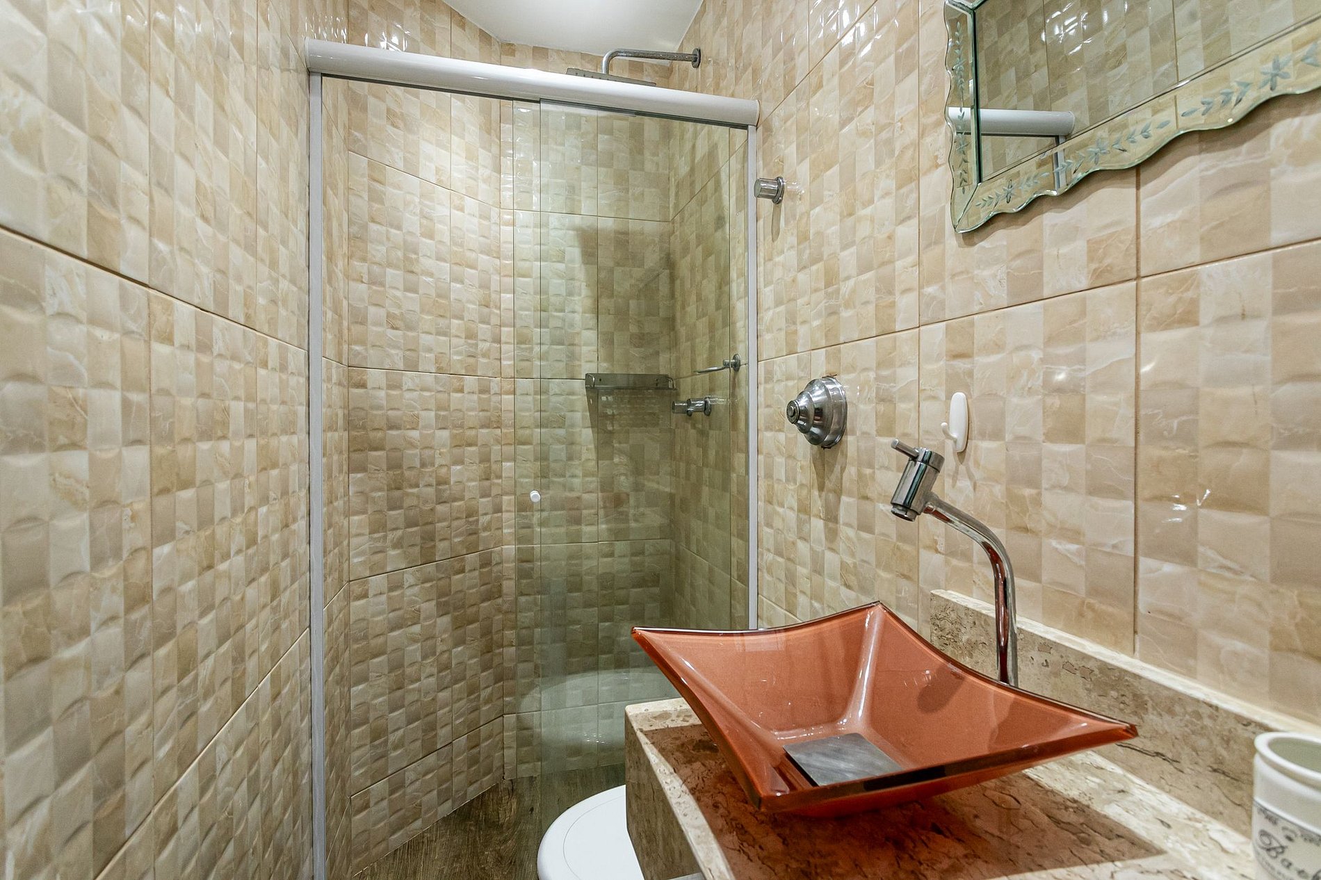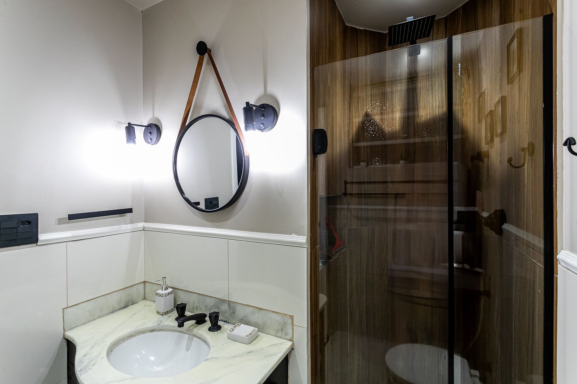 O apartamento também conta com máquina de lavar, ferro e tábua de passar, e secador de cabelo. O condomínio possui estacionamento (01 veículo) e portaria 24h.