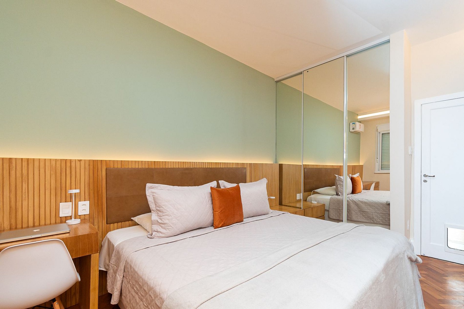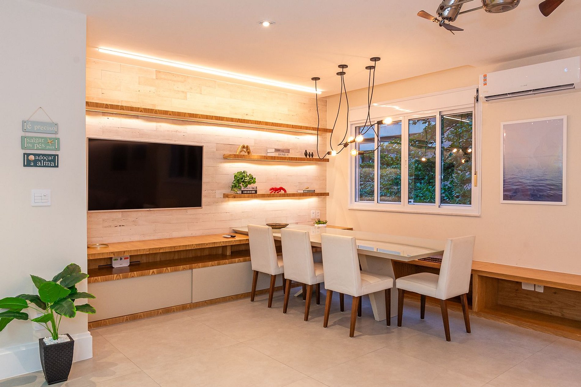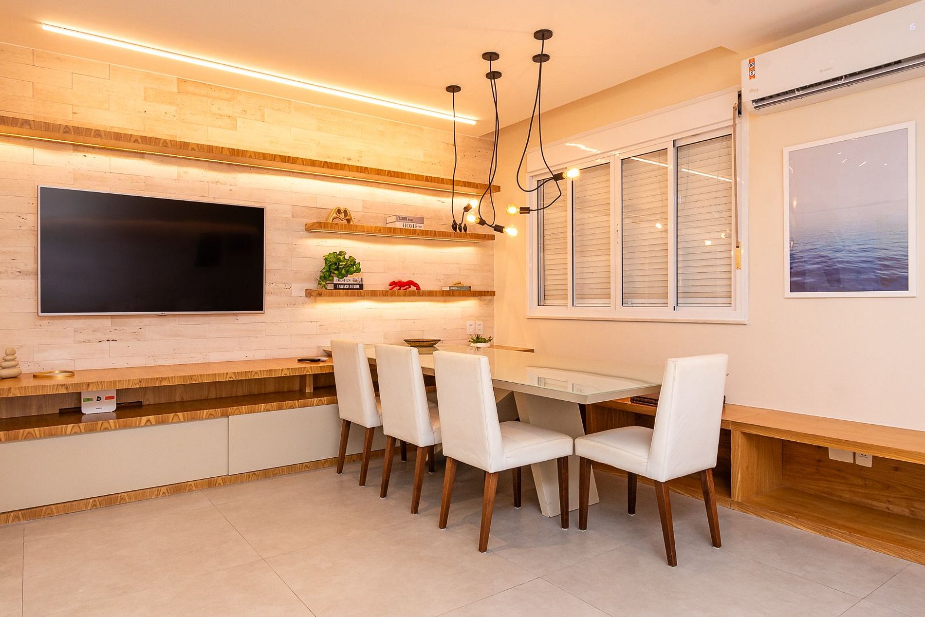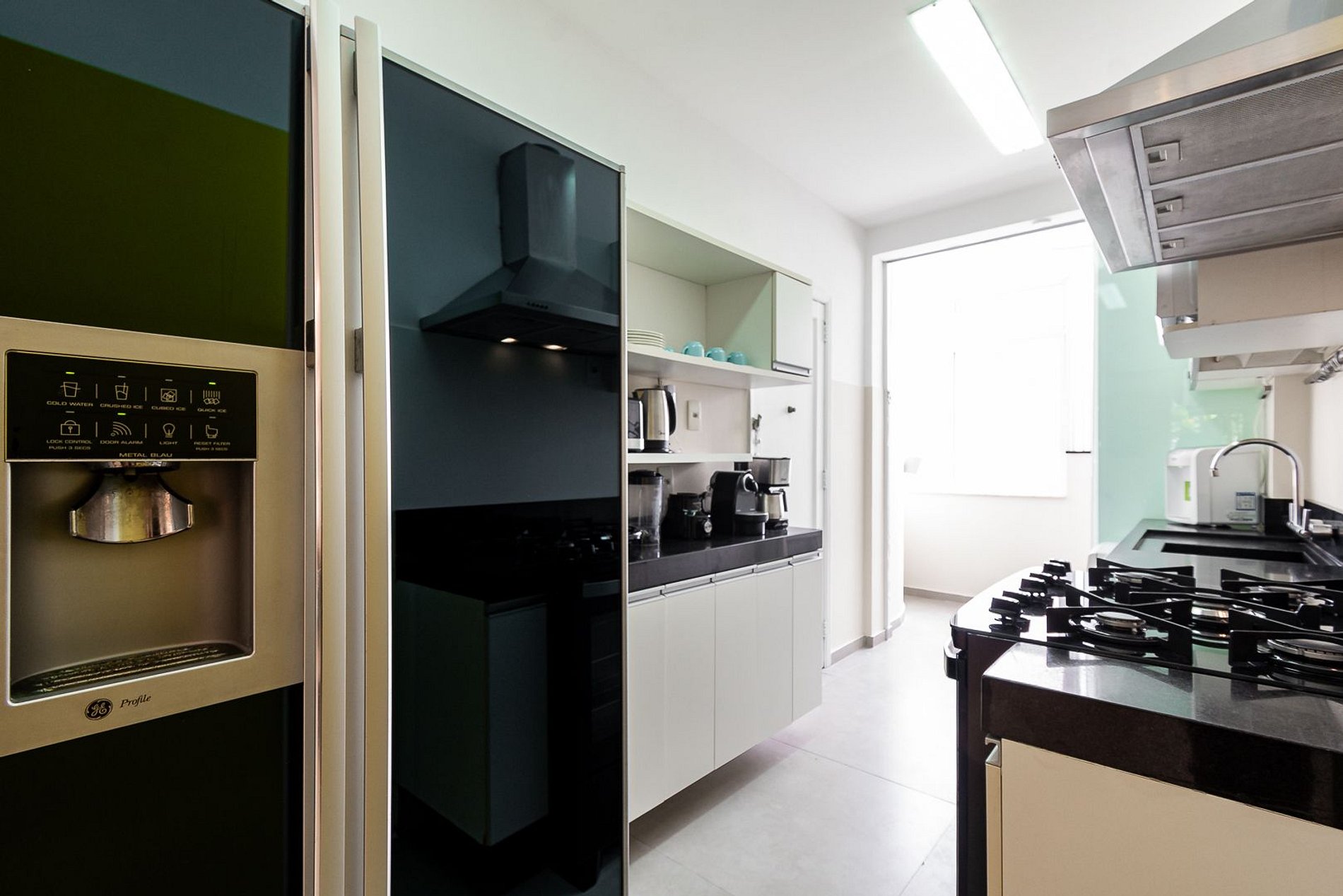 Espaço dedicado à hospitalidade, decorado com primor e completo com todas as facilidades para uma estadia confortável e agradável. A Suíte está equipada com uma cama King-Size, ar-condicionado split, SmartTV, closet e estação de trabalho. O segundo quarto está equipado com uma cama de casal, armário e ar-condicionado Split. A sala de estar possui ar-condicionado split, SmartTV, sofá e mesa de jantar com 7 assentos. A cozinha está totalmente equipada com tudo que você precisa para se sentir em casa: micro-ondas, fogão a gás de cinco bocas, forno, geladeira, filtro de água, máquina de café, liquidificador, pratos, panelas e talheres. Os banheiros possuem água quente por aquecedor a gás automatizado.