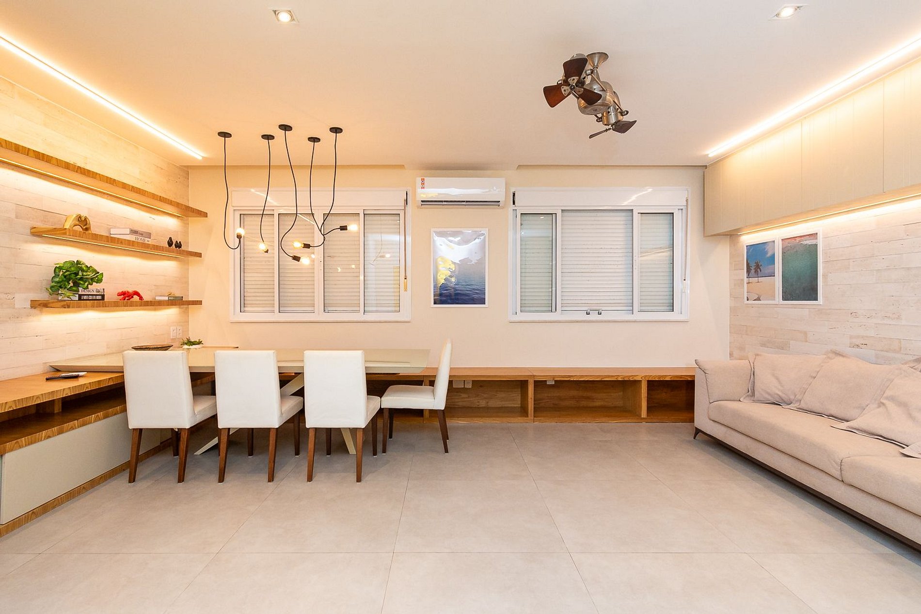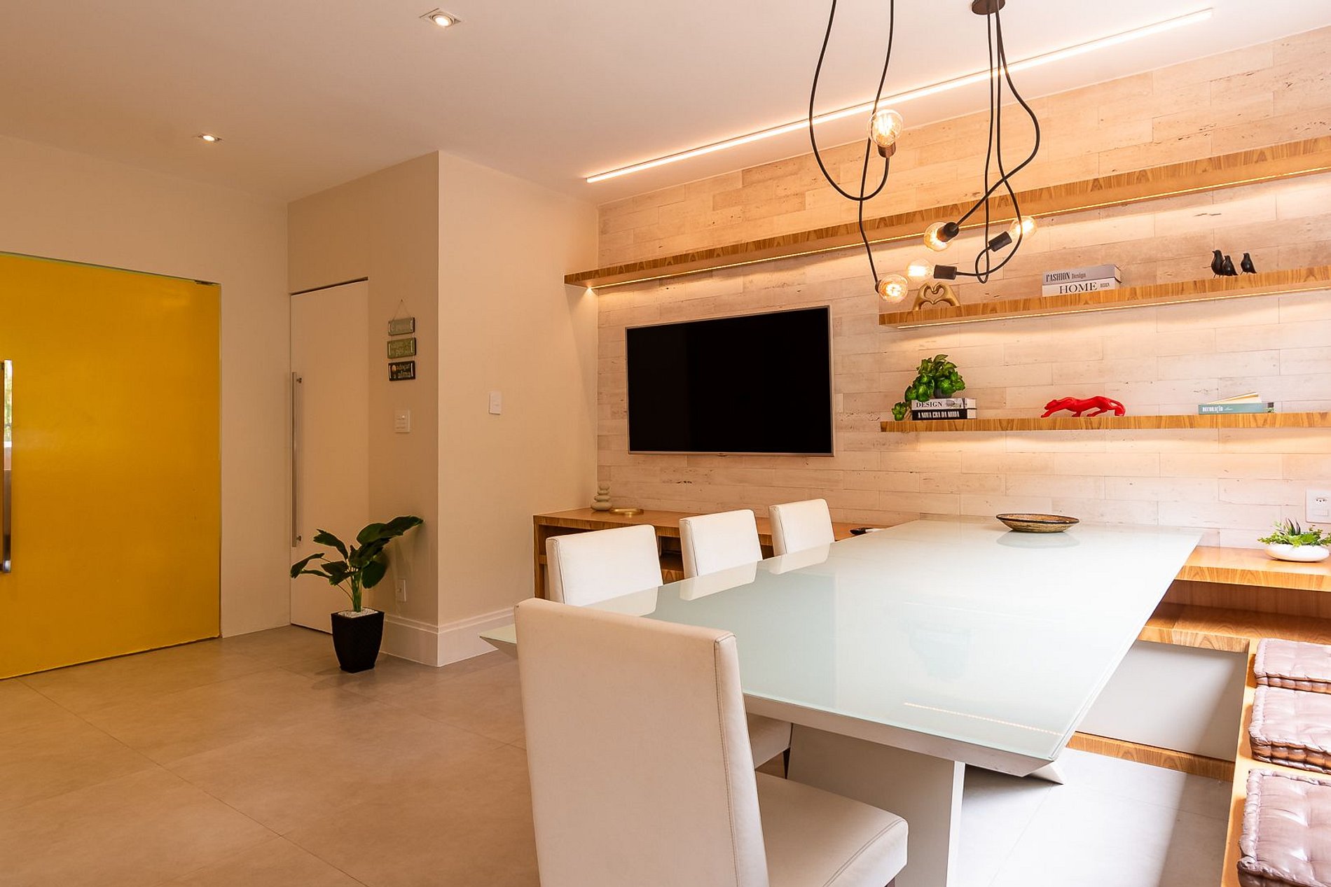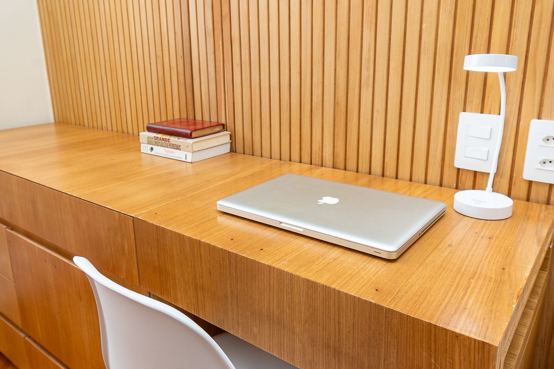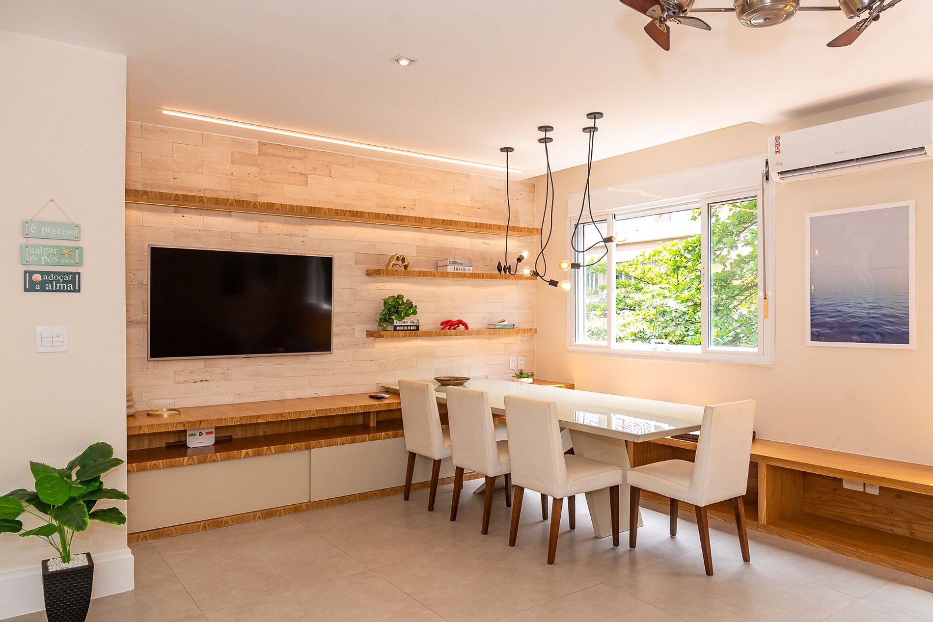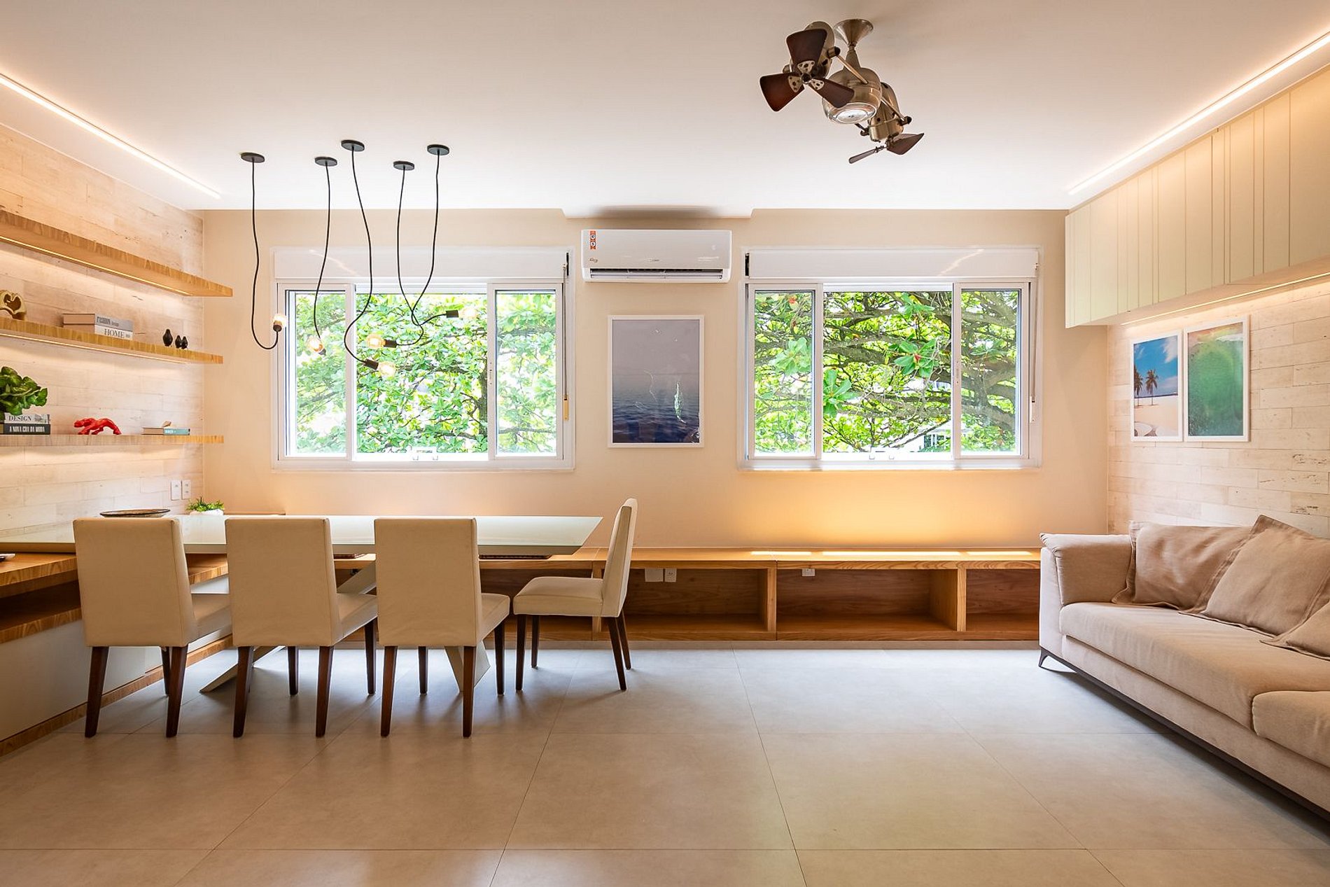 Espaço dedicado à hospitalidade, decorado com primor e completo com todas as facilidades para uma estadia confortável e agradável. A Suíte está equipada com uma cama King-Size, ar-condicionado split, SmartTV, closet e estação de trabalho. O segundo quarto está equipado com uma cama de casal, armário e ar-condicionado Split. A sala de estar possui ar-condicionado split, SmartTV, sofá e mesa de jantar com 7 assentos. A cozinha está totalmente equipada com tudo que você precisa para se sentir em casa: micro-ondas, fogão a gás de cinco bocas, forno, geladeira, filtro de água, máquina de café, liquidificador, pratos, panelas e talheres. Os banheiros possuem água quente por aquecedor a gás automatizado.
