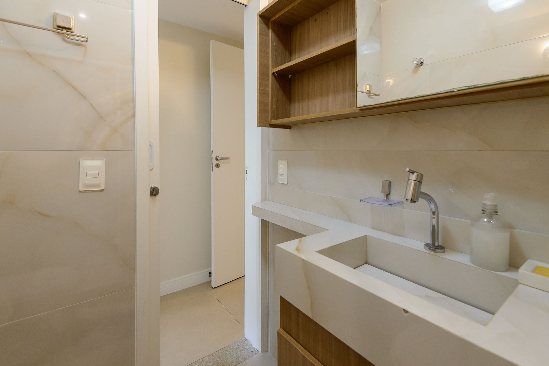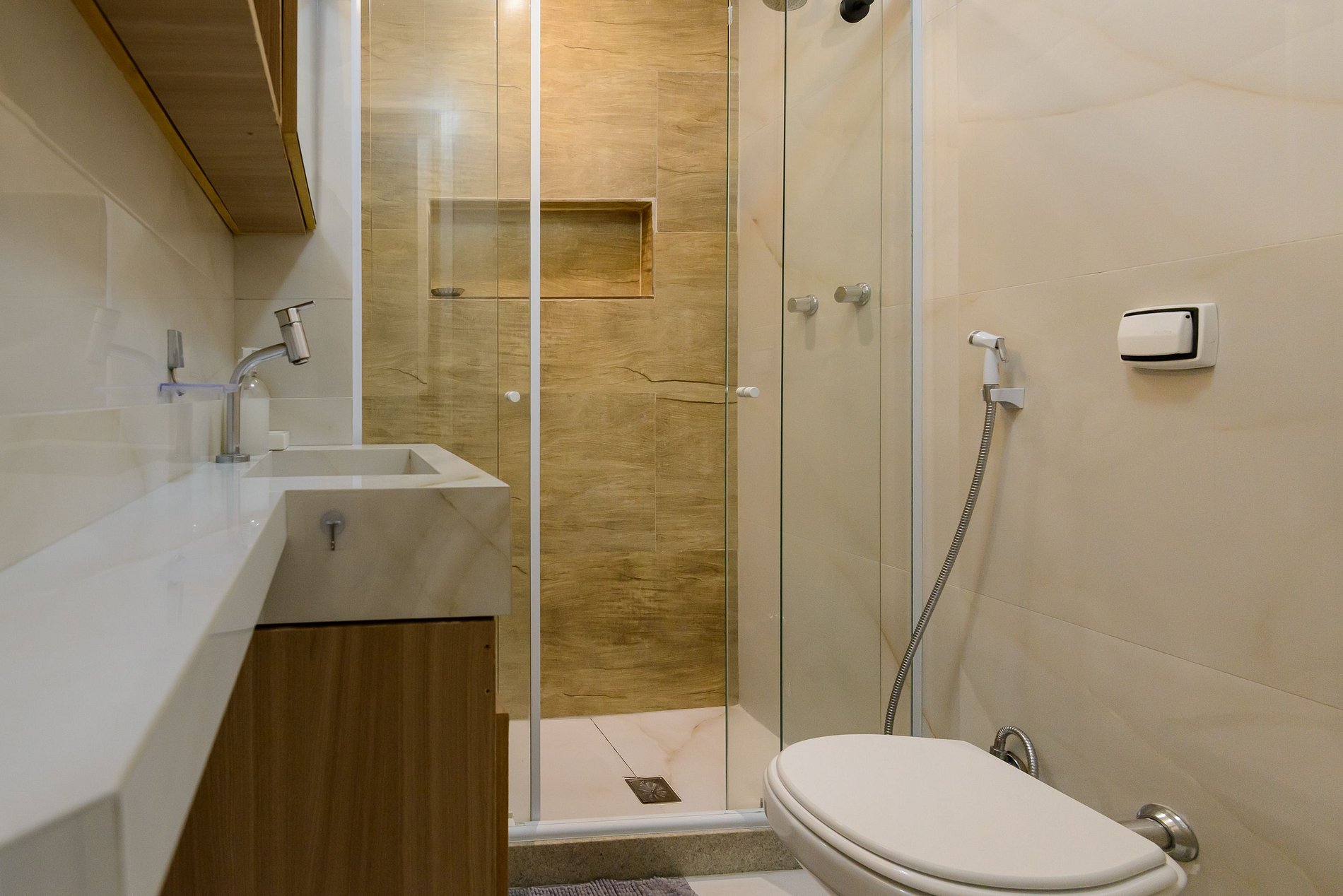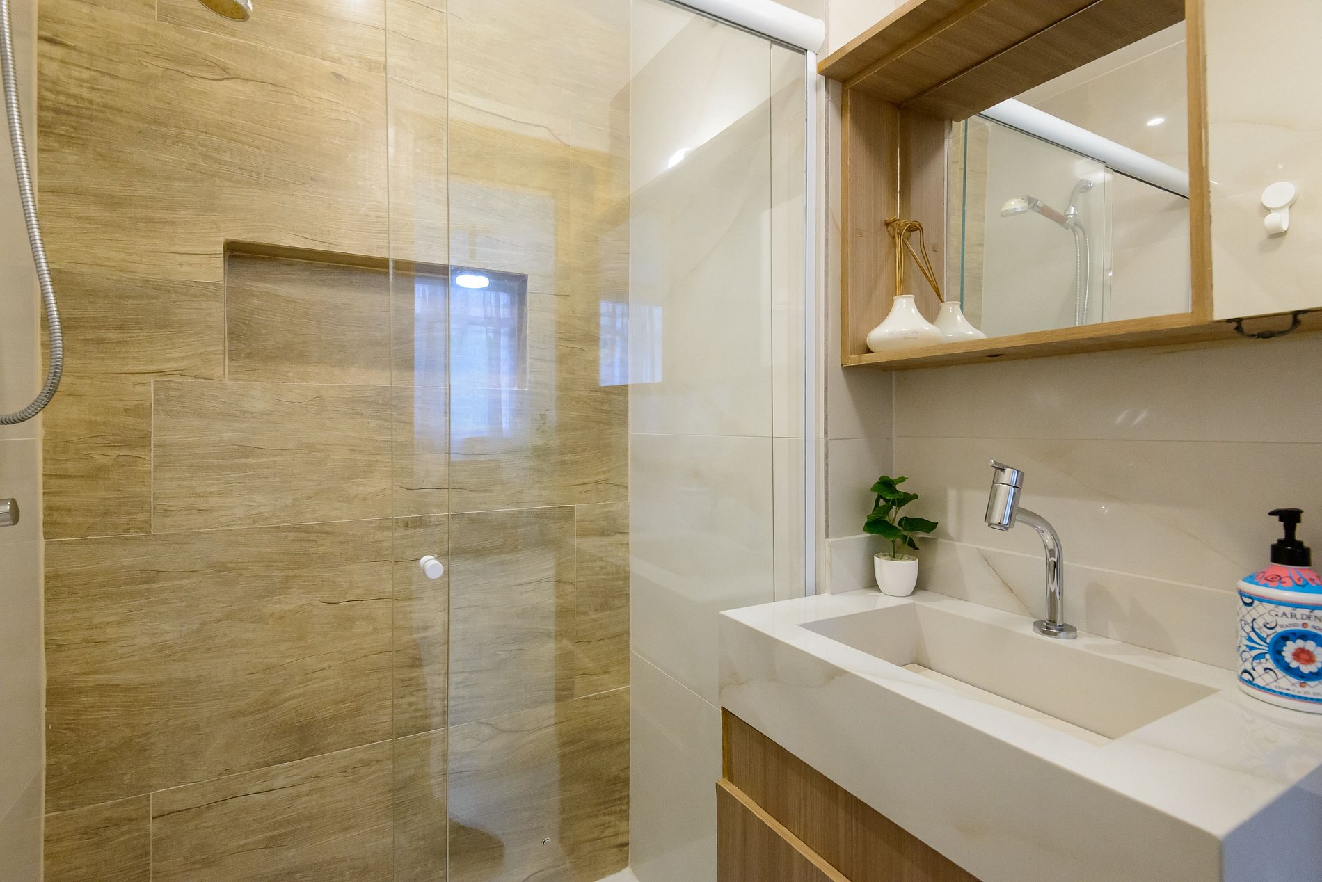 A área de serviço oferece ainda mais praticidade, contando com máquina de lavar, tanque e espaço funcional para pequenas tarefas do dia a dia.