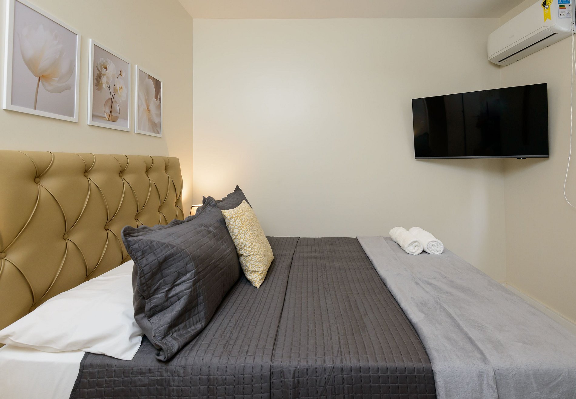 O imóvel foi planejado para oferecer conforto e praticidade, contando com aquecimento de água a gás, Wi-Fi e ar-condicionado. Na suíte, os hóspedes encontram uma cama queen e armários, garantindo noites de descanso com todo o conforto. No segundo quarto, há uma cama de casal, espaço para acomodação de roupas e uma Smart TV, oferecendo ainda mais comodidade. A sala é ampla, bem iluminada e equipada com ar-condicionado, sofá aconchegante e integrada à cozinha americana, que é super equipada com geladeira, micro-ondas, cafeteira, fogão a gás, filtro de água e utensílios como panelas, pratos, talheres e copos.