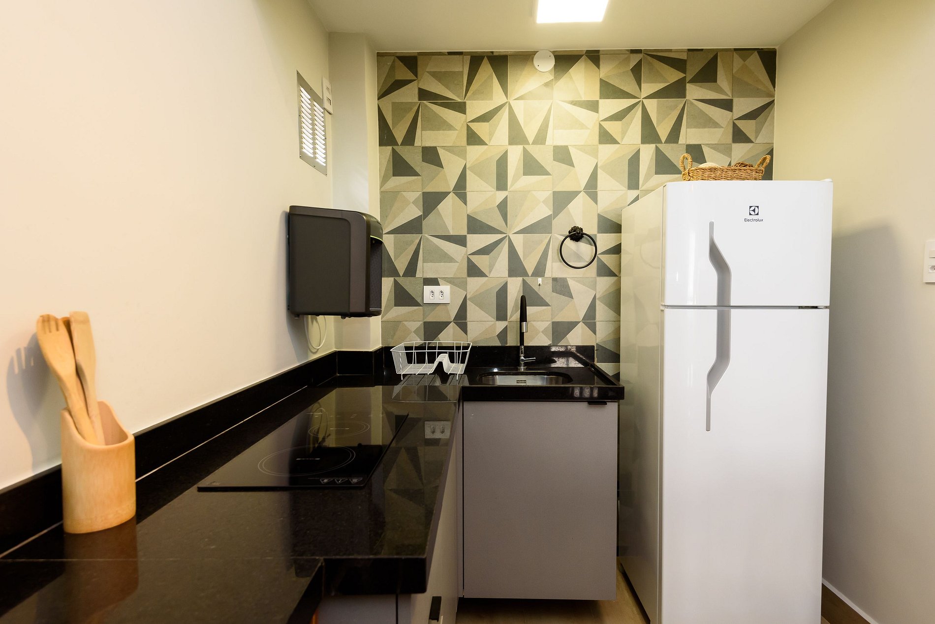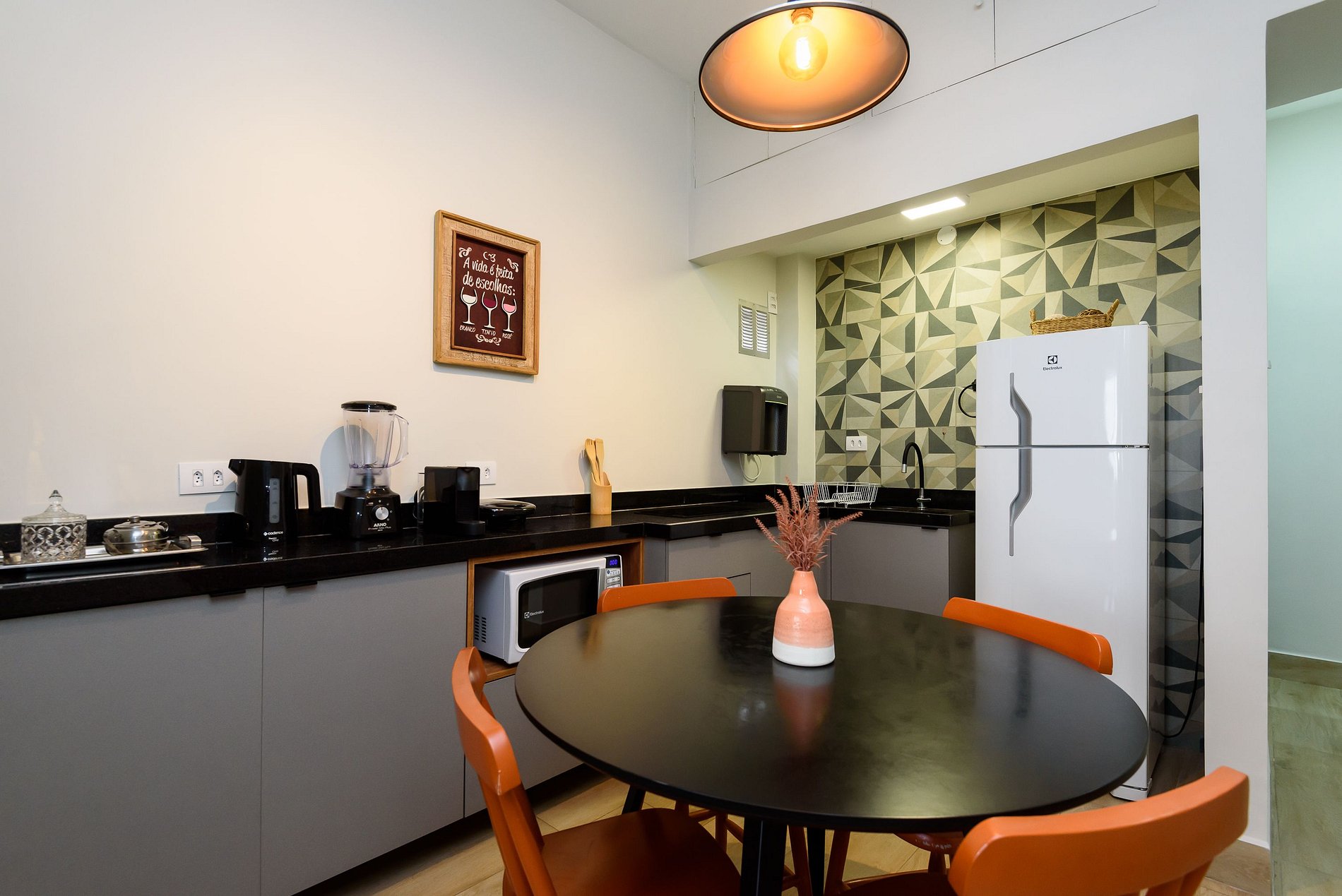 Estúdio dedicado à hospitalidade, equipado com todas as facilidades para uma estadia confortável e agradável. O quarto está equipado com uma cama casal, ar-condicionado split e estação de trabalho, SmartTV e sofá-cama. A cozinha está totalmente equipada com tudo que você precisa para se sentir em casa: micro-ondas, fogão elétrico de 2 bocas, geladeira, máquina de café Nespresso, liquidificador, pratos, panelas e talheres. O banheiro tem box com chuveiro elétrico e secador de cabelo.