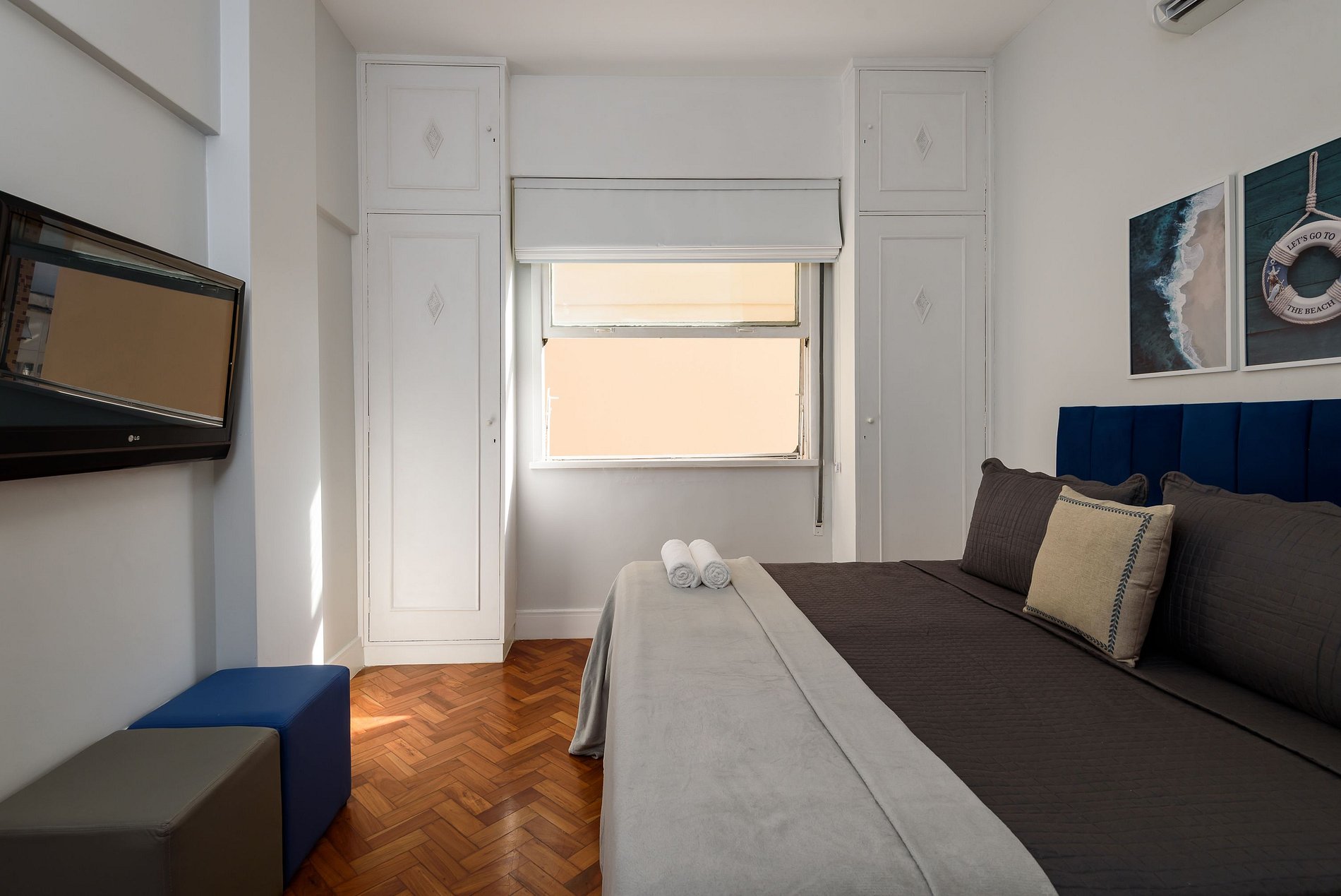 Este apartamento é equipado com Ar-Condicionado, Workstation, Wi-Fi 300 Mega, cama King-Size e é perfeito pra você que busca passar alguns dias na Cidade Maravilhosa ou morar alguns meses como um verdadeiro Carioca. Localizado no melhor ponto de Copacabana e a apenas 5 minutos da praia mais famosa do mundo, este espaço acomoda até 5 pessoas e vai conquistar seu coração.